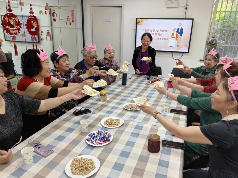 近日,金雅苑社区联合社会组织海鸥学堂、九如城养老服务机构开展了“温情久久集体生日会”活动。