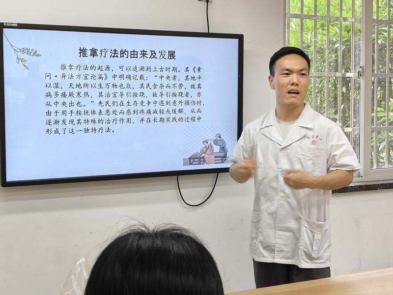 随后医生亲自示范,为大家现场讲解了关键穴位的位置、功效和按摩技巧,引导居民们学习正确的按摩手法。大家都兴致高昂,认真倾听医生的讲解,通过亲身体验,居民们体会到了中医的博大精深,对中医养生的魅力有了更深入的认识。