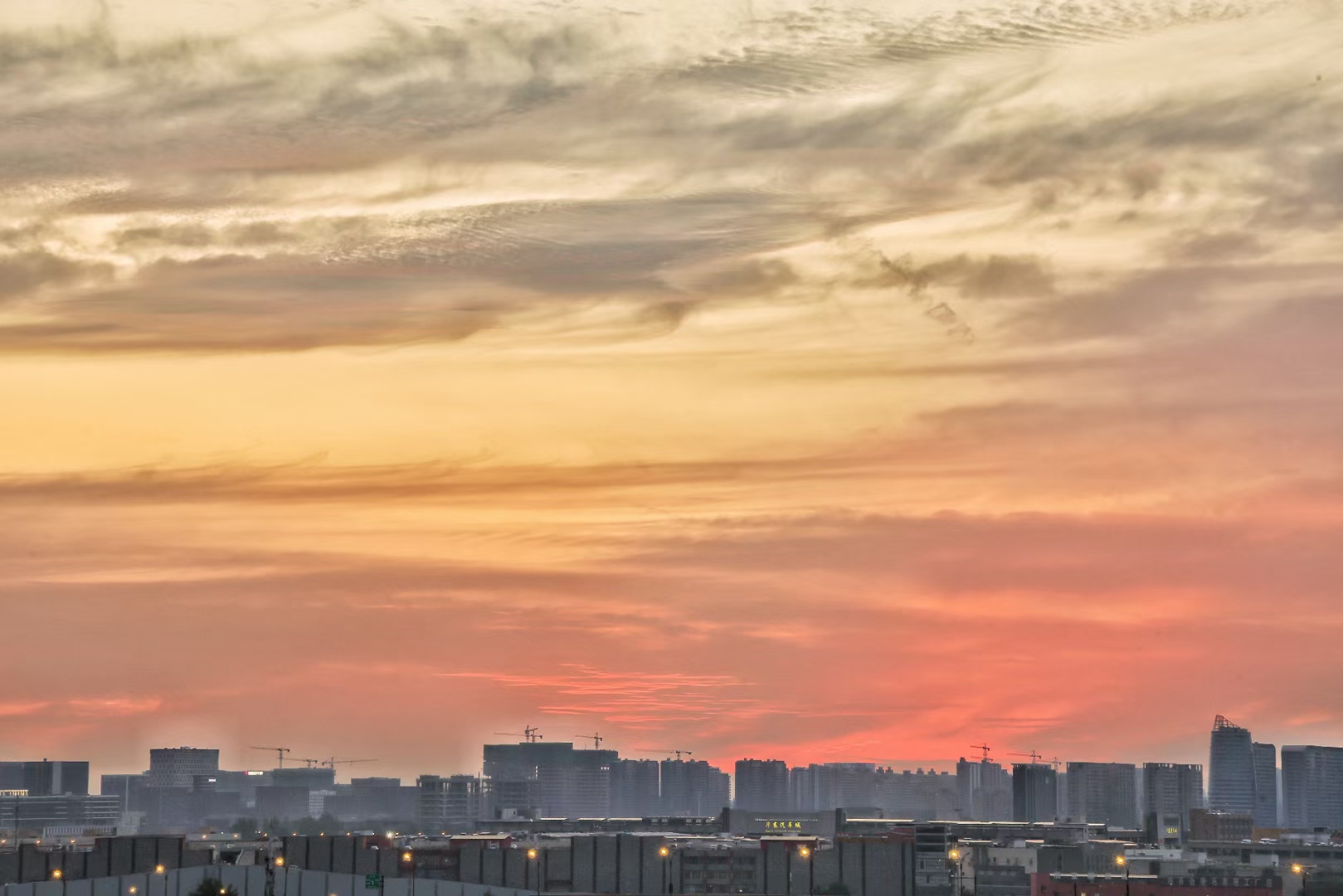 晨光如约而至,朝霞映在云间,云为笔光为色,描绘缤纷斑斓。 —金雅苑社区 郭伟根 晨曦 拍摄于九堡