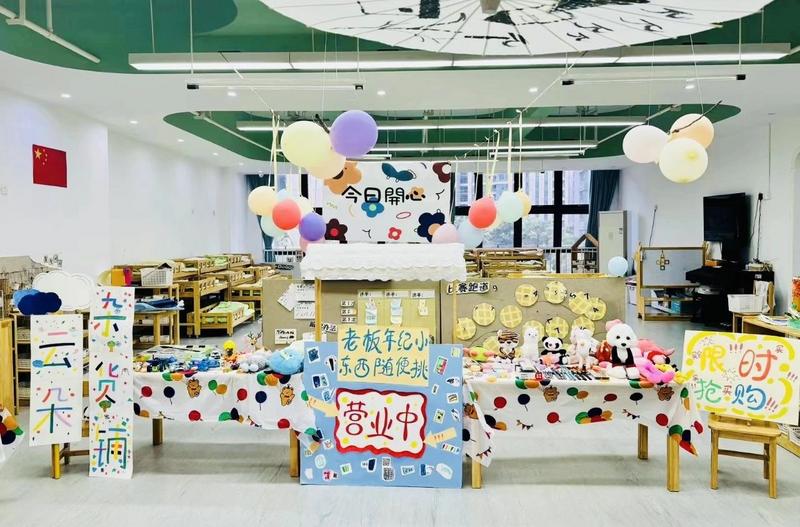 爱心义卖终于要开始啦!一个个别出心裁的铺名、一幅幅热情洋溢的宣传海报、一件件充满童趣的手工作品……琳琅满目的商品摆满了各个铺面。快来看!整个义卖现场人潮涌动、热火朝天,快跟上步伐,感受一下蝶儿宝贝们的义卖市场吧。“走一走,瞧一瞧,快来看看我这边。”“走过路过,不要错过……”英雄不问出处,摆摊不论年龄。别看老板年龄小,但做起生意来可是有模有样,身为“小老板”的孩子们坐在摊位前,热情地向往来的顾客推销、兜售商品。