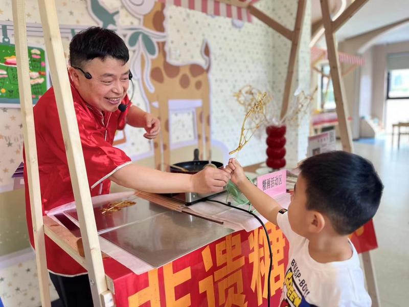糖画技艺环节更是将活动推向了高潮。老师带领小朋友们一同学习糖画技艺。活动现场,只见老师舀起糖液,或提、或顿、或放、或收,十来秒的工夫,一条巨龙便栩栩如生地展现在大家眼前。小朋友们拍手惊叹,跃跃欲试,体验并制作了属于自己的独一无二的糖画作品,有飞舞的蝴蝶、可爱的兔子、威猛的老虎、灵动的悟空……看着生动可口的糖画,孩子们都忍不住舔上一口。