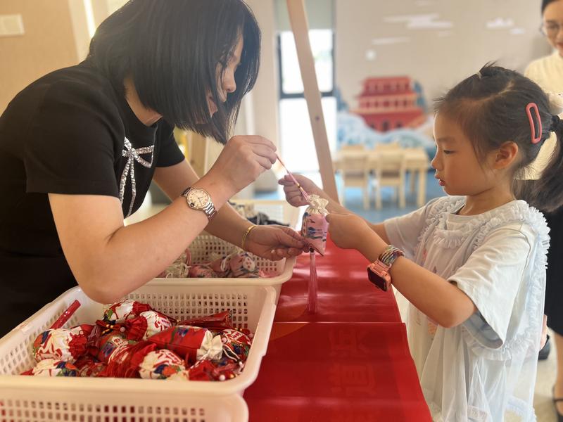 香囊制作与传统非遗体验活动吸引了众多家庭的热情参与,共同体验了传统文化的魅力。香囊作为端午节的传统手工艺品,具有驱蚊避邪的实用功能。在香囊制作环节,亲子家庭在工作人员的指导下,利用、丝线、香料以及特制的布料等材料,亲手制作了精美的香囊。孩子们在家长的陪伴下,锻炼了动手能力,还学会了与家长的协作与沟通。