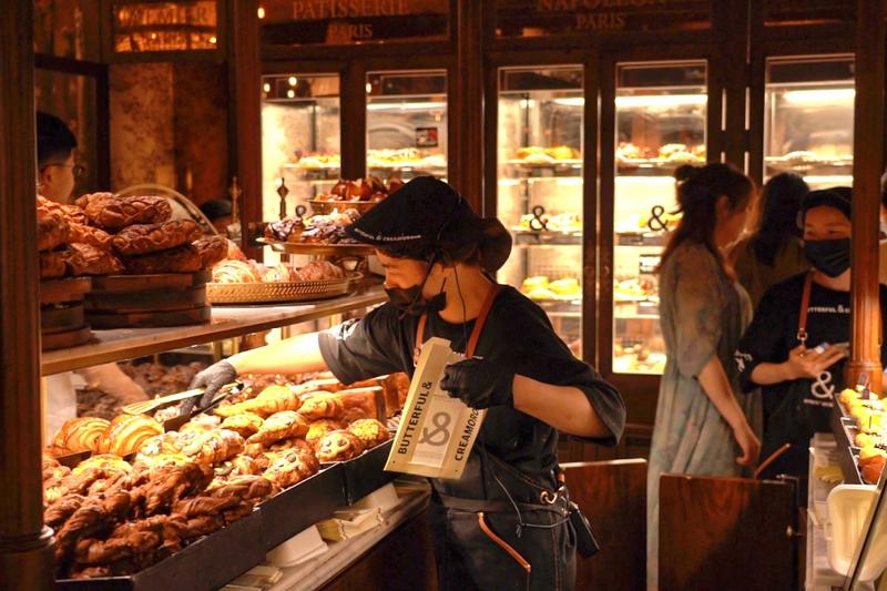 “对于巴黎面包博物馆,我们想区别于所有烘焙店,做成一个面包艺术博物馆的形式,希望从视觉上进一步激发消费者对品牌及产品的兴趣。”巴黎面包博物馆店长徐玉龙介绍,店内设计左右双向的购物动线,搭配独特的建筑外观和复古风格的内饰,置身其中,仿佛踏入了那个古铜色的年代,感受到迷人的法兰西风情。
