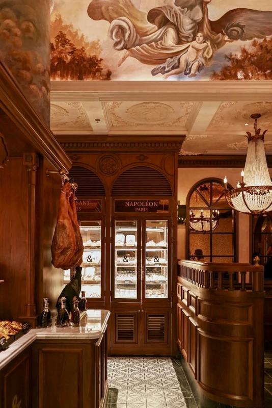 1730·TRUFFE BOULANGERIE PARIS巴黎面包博物馆面积约400平方米,以法式复古宫廷风为设计主调,呈现洛可可风和复古华丽的场景感。店内穹顶上的平顶雕花,端庄雄浑,流淌着现代时髦与自然华美,还有复古花瓶、实木雕花陈列展架、全手绘壁画、浮雕以及富有年代感的老照片等,每一处细节都诠释着法式浪漫。