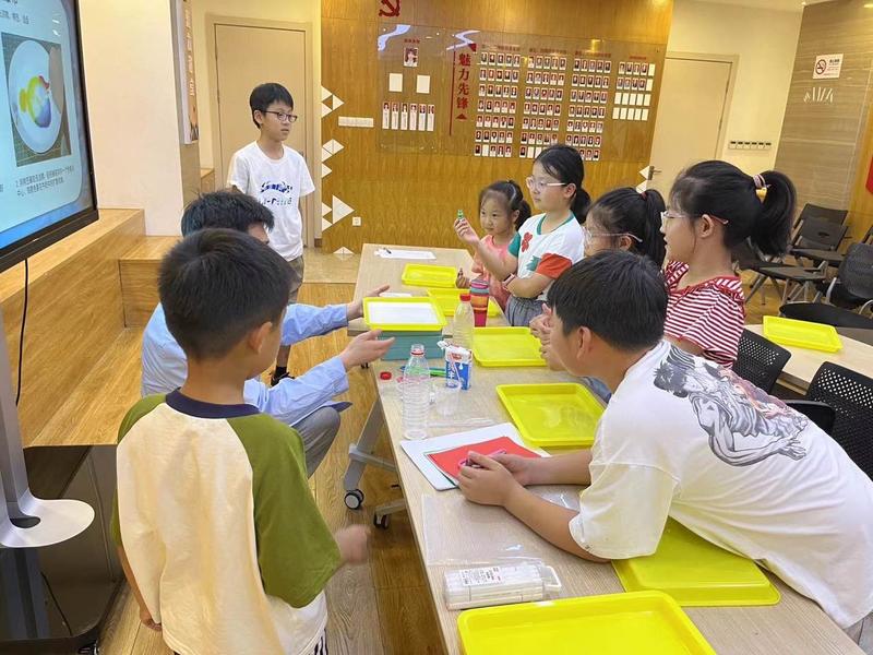 7月16日下午,魅力城社区启动“探秘水拓 绘梦暑期”科学艺术活动。孩子们在专业导师的引导下,踏入水拓画的奇幻殿堂,通过“水面力量的奇妙展现”“旋转小蛇的舞动奇迹”等实验,深入理解液体张力的奥秘,并亲手实践其在水拓画中的妙用。活动鼓励孩子们创作独特的艺术品,激发他们对自然科学的浓厚兴趣与探索欲。