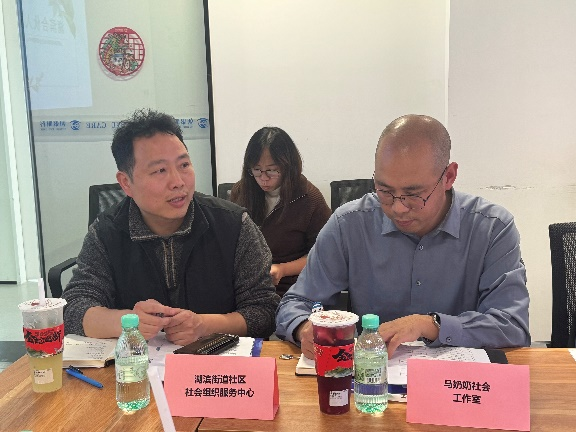 各单位探讨了如何通过创新模式,发挥资源最大化,接下来将结合“湖滨合伙人”数字化平台,提升志愿服务参与度和积分兑换覆盖率。吸引更多的居民和企业共同参与,双向奔赴。共创会特设“茶话私聊”环节,为各单位提供了更自由更深入的交流机会。其中,两家单位现场碰撞出合作的火花,开启深度合作的探索之旅。
