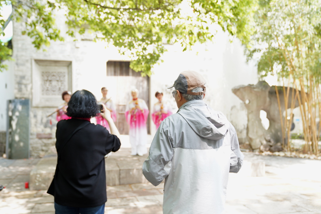 “我在这儿住了有50多年了,家门口现在有这么好的娱乐放松平台,我很满意,只要有空,我都会来这个‘音乐角’听听音乐休闲一下。”几棵香樟树下,不少来往居民游客正聚集于此,现场弥漫着温馨而热烈的氛围。5名七旬老人正激情洋溢地吹奏着巴乌和葫芦丝,驻足的人们有的跟着旋律轻轻跟着哼唱;有的举起双手敲打着节拍;更有被乐声打动的外国友人,他们举起相机不停按下快门,记录着异乡风情。