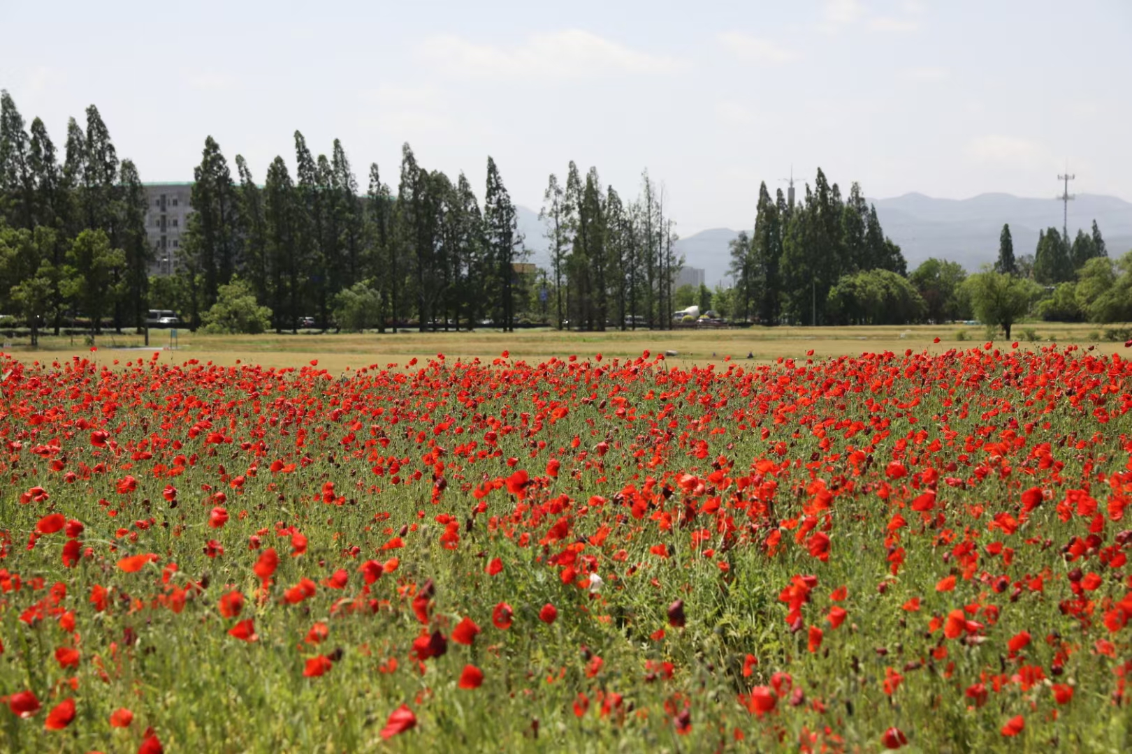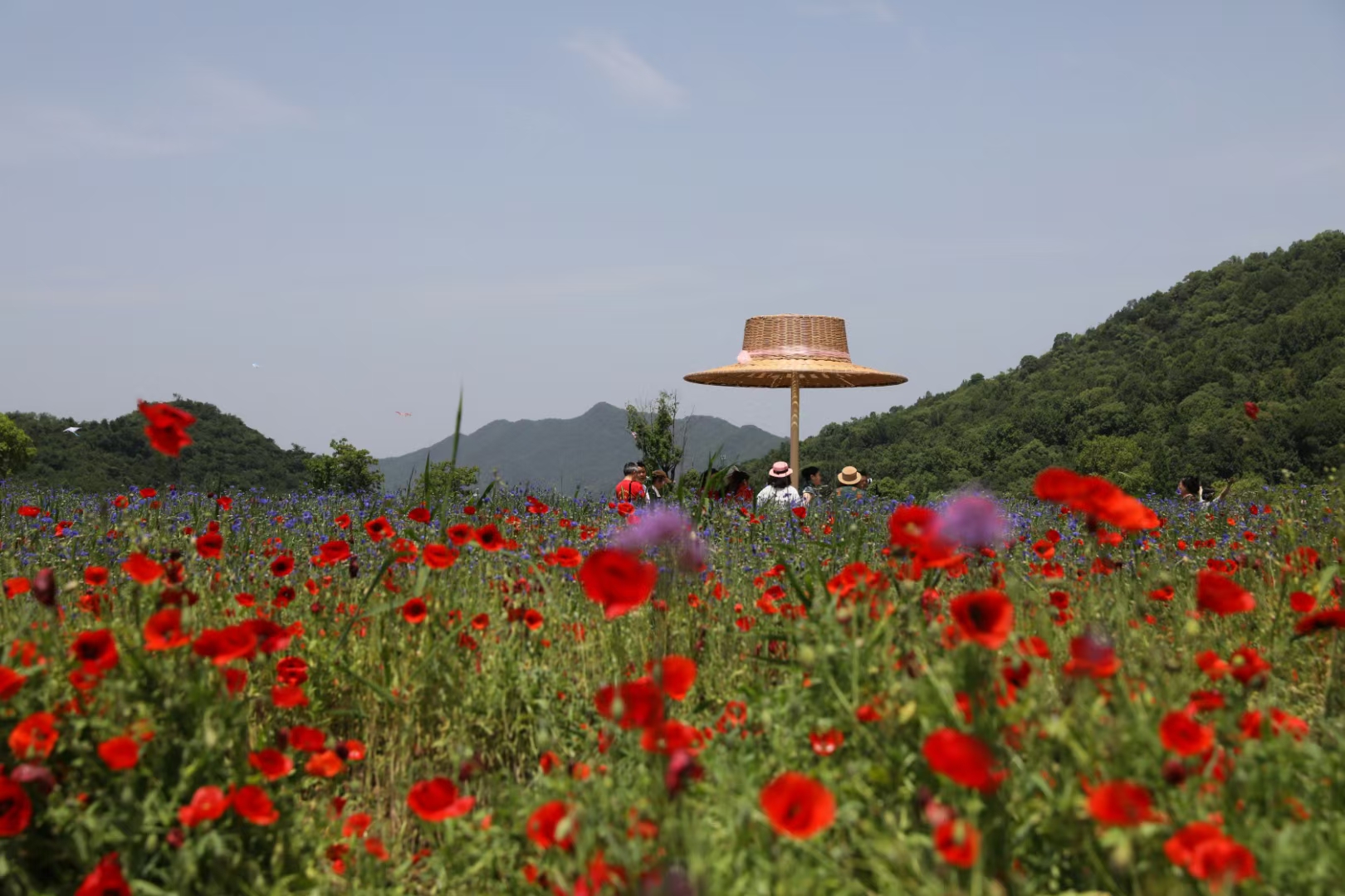 游人置身于铜鉴湖这片花海,仿若闯入了梦幻仙境。目力所及,是铺天盖地的红蓝紫各色的花朵,它们密集地生长着,如繁星洒落大地。(2025年5月 铜鉴湖花海 江志清 摄)