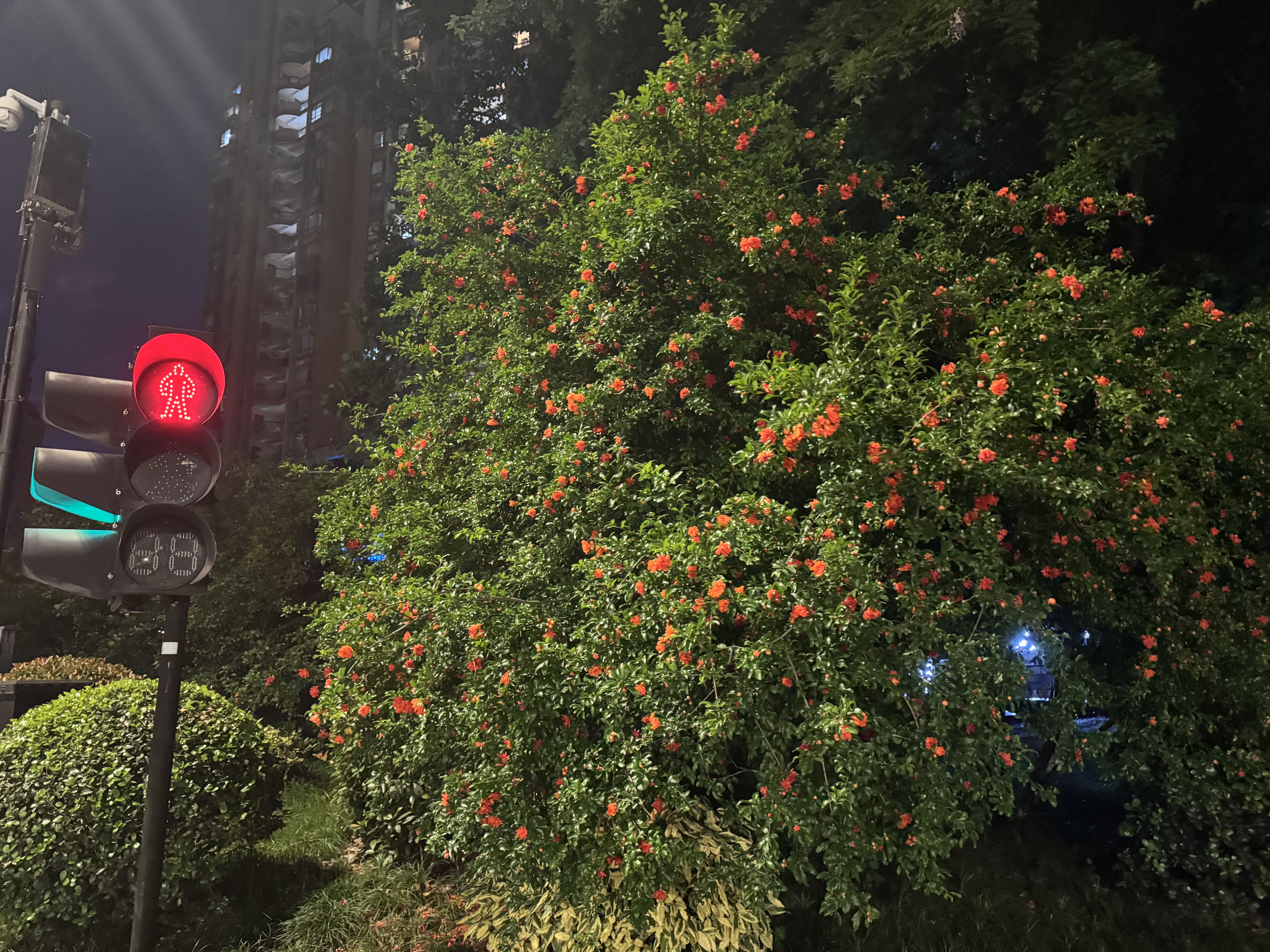 【夜神丹若】夜幕初降,忙碌穿梭的人群、车流,与她擦肩而过。她不惊不喜,淡泊雅态,只有偶时风起,才欣然舞动,直至路口只有一盏暖灯与她相伴,等待黎明。(资料:紫阳街道 候潮东路钱江路口 雷垚鑫 摄)