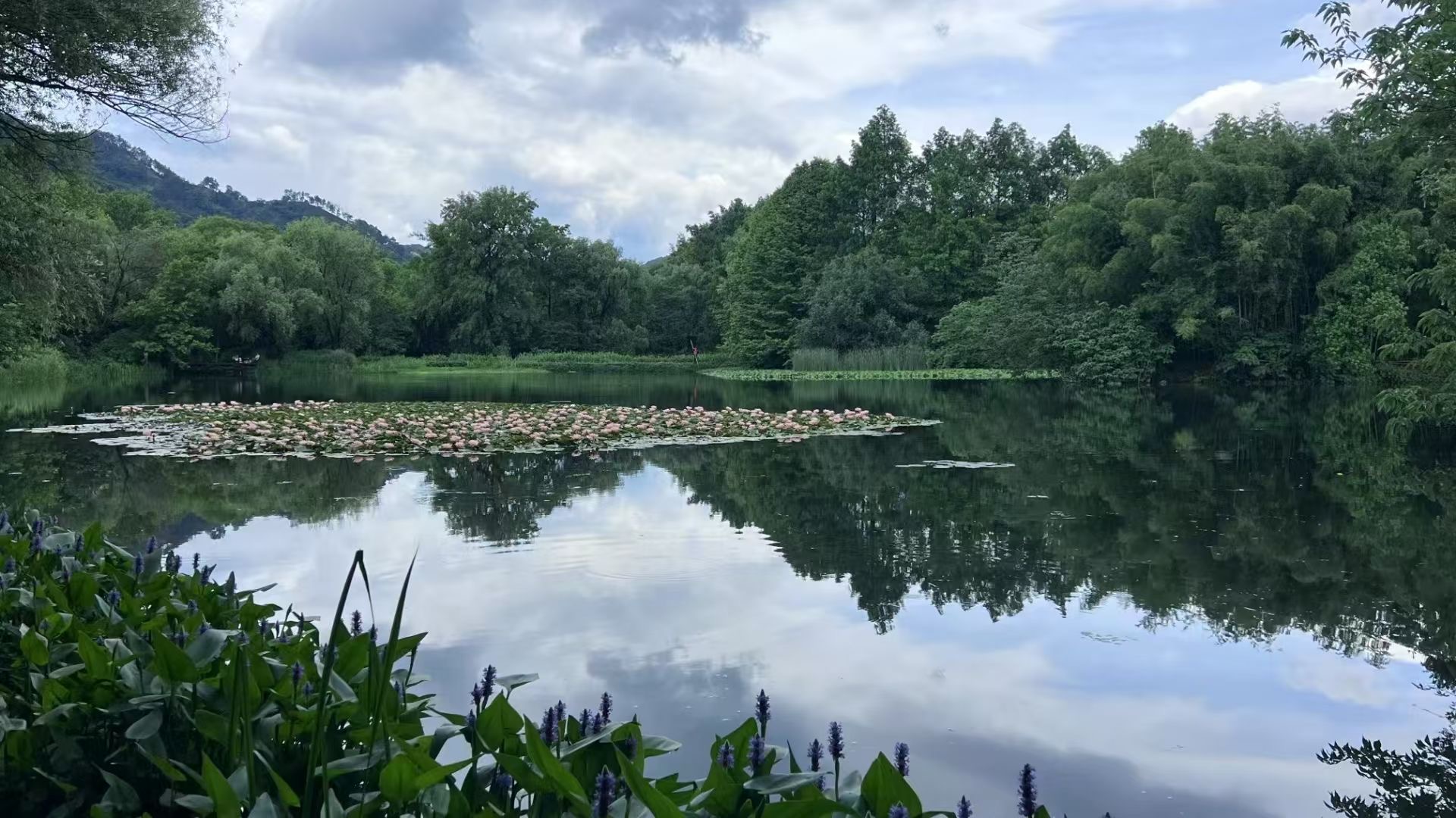 【一湖碧波启新章】 清晨,站在湖边,观览着水平如镜的西湖。湖水清澈碧绿,宁静而悠远,迎来了新的一天。(资料:紫阳街道 西湖 徐枫 摄)
