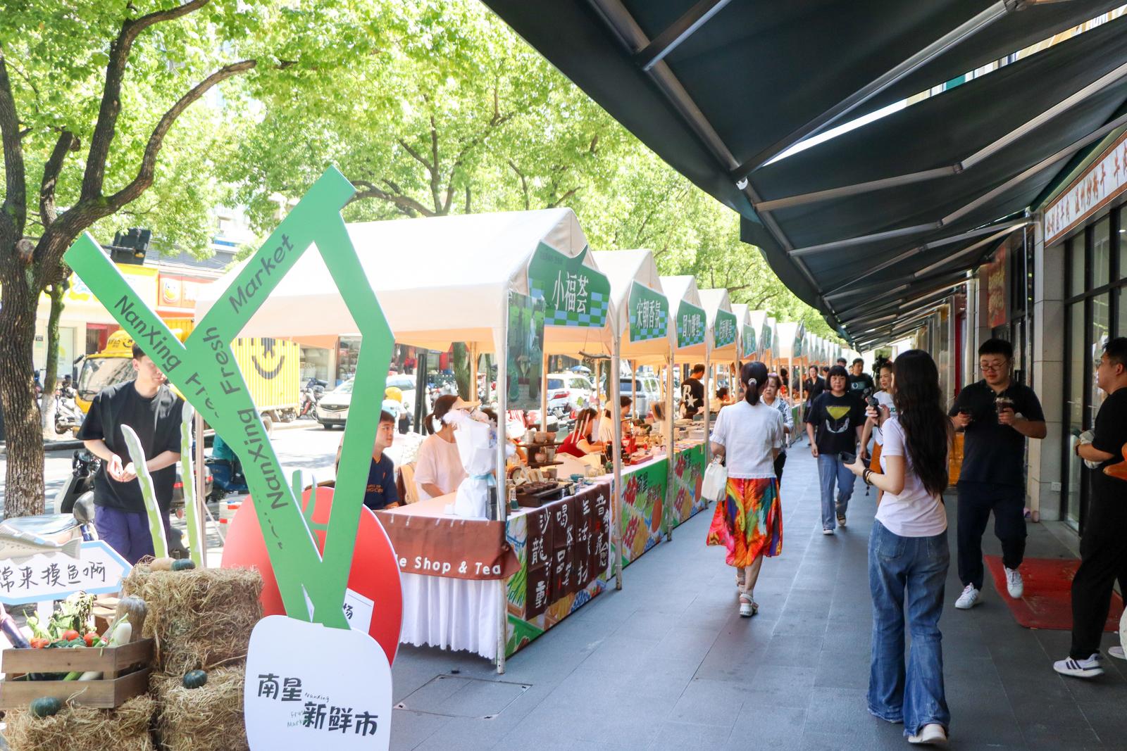 开街之际,丰富多彩的互动活动同步开启。“以书换蔬”传递知识与善意;主题“菜篮子”满足减脂、养生、滋补等多元健康需求;一楼文艺赋美街区唱起国风小调;“厨神争霸赛”名厨云集,烟火气十足。此外,菜市外摆区的“南星鲜趣漫游集”与龙山河畔的“草木艺术市集”,汇聚文创、咖啡、轻餐、手作等轻业态,展现南星小店经济的蓬勃活力,与碧波绿荫相映成趣。