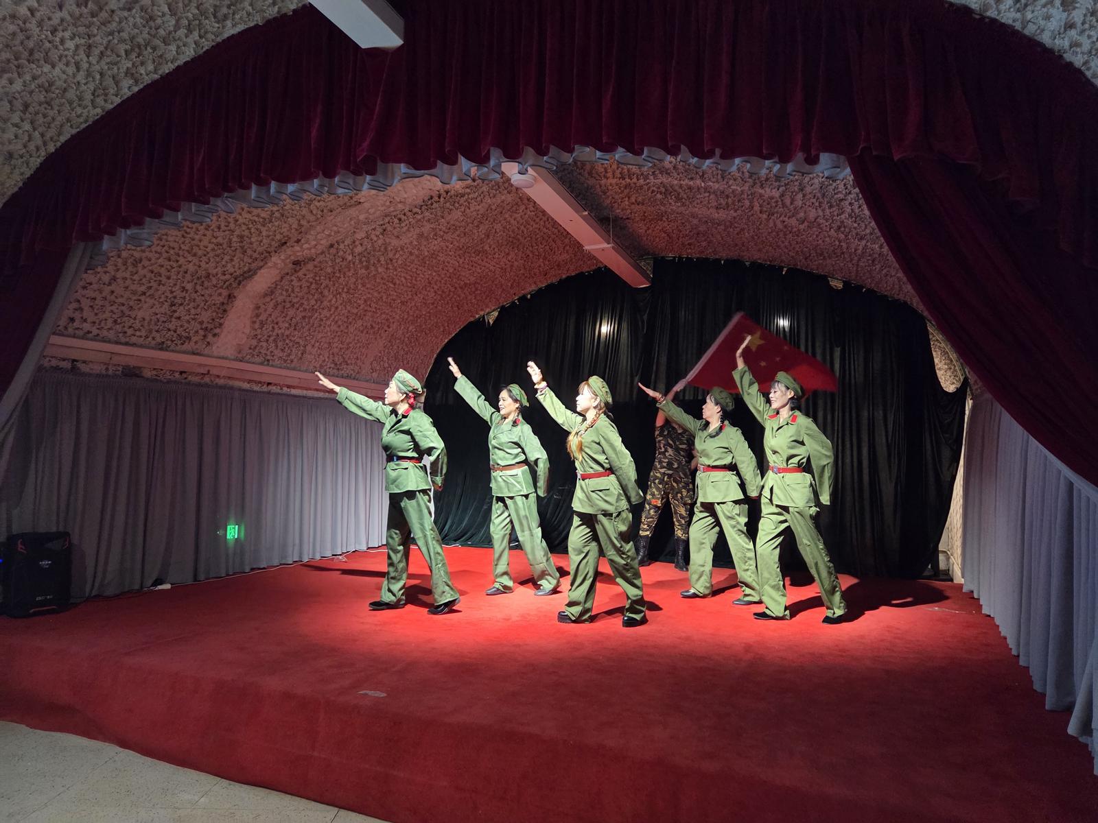 上午10点,防空洞内早已座无虚席。在居民们热烈的掌声中,十五奎巷社区金秋驿站“钦慧艺术团”以舞蹈《跟党走》拉开演出序幕。老干部们精神矍铄,一曲《我爱你中国》和《心中的歌唱给党》以优美的舞姿传递对祖国和党的深情;彭埠街道的“茶韵时装秀模特舞蹈队”带来旗袍秀《水墨醉江南》,优雅的舞步彰显了新时代老年人的风采,更将现场气氛推向高潮。