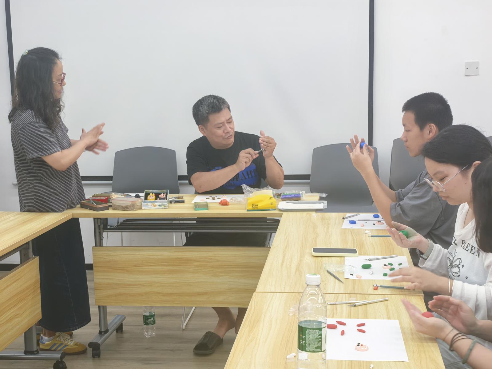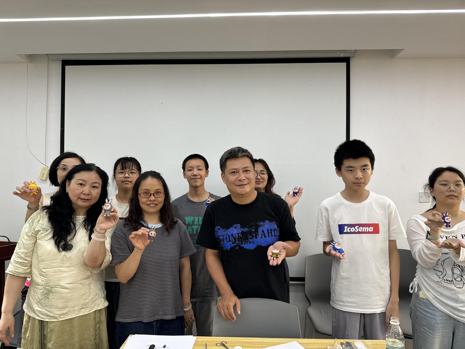 活动特别邀请到了区捏塑非遗传承人丁建华老师进行指导。丁老师先向大家详细介绍了非遗捏塑的历史渊源、基本技巧以及陶艺拉布布的形象特点。他一边耐心讲解,一边现场示范,从泥土的揉制、塑形,到细节的刻画,每一个步骤都讲解得清晰透彻。在动手操作环节,大家兴致勃勃,一点点地塑造自己心中的拉布布形象。有的专注地贴上拉布布的牙齿,有的则在琢磨如何让拉布布的表情更加生动。