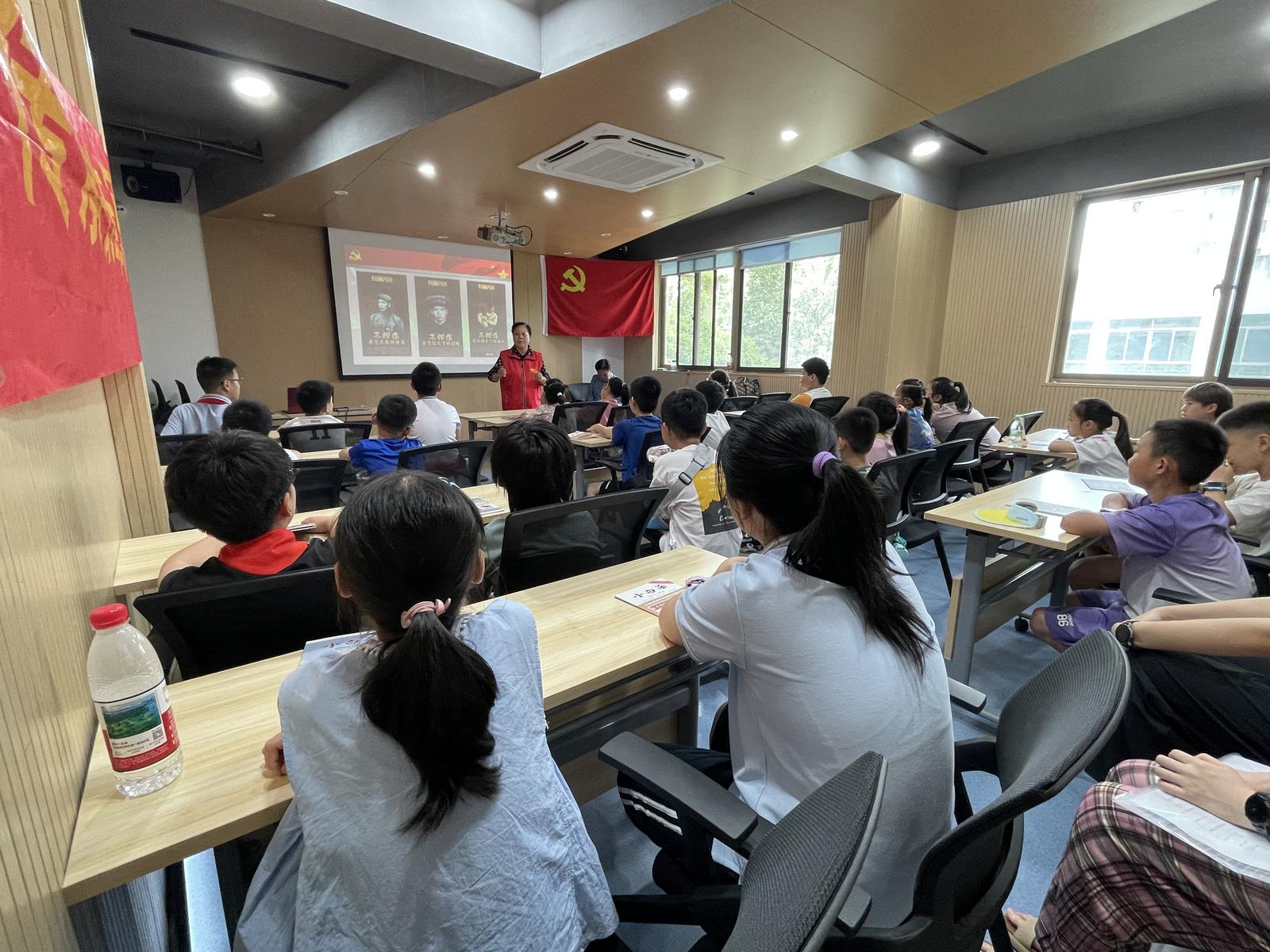为纪念抗战胜利80周年,深切缅怀革命先烈,传承弘扬伟大的抗战精神,8月1日,天运社区特别邀请上城区关工委红巷宣讲团副团长梁小明老师和心理辅导团孙晓明老师,走进社区活动中心,为辖区青少年和家长带来了一场生动而深刻的红色故事会——《特级战斗英雄杨根思叔叔的故事》及《笕桥空战》。