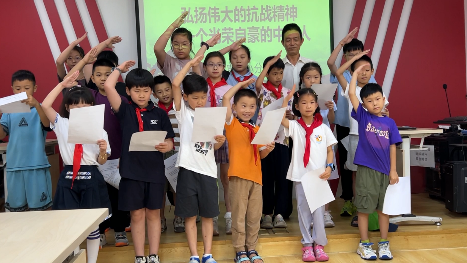 宣讲内容主要围绕“九一八事变”“抗日战争”“南京大屠杀”等事件。来自茅以升学校的青年宣讲员为在场的青少年们生动地讲述和珍贵的历史图片,让大家深入了解了这段屈辱与抗争交织的历史,引导青少年们思考如何在和平年代更好地为校园和祖国做出贡献。随后,在场的青少年们集体上台宣誓,弘扬伟大的抗战精神,争做一个光荣自豪的中国人。
