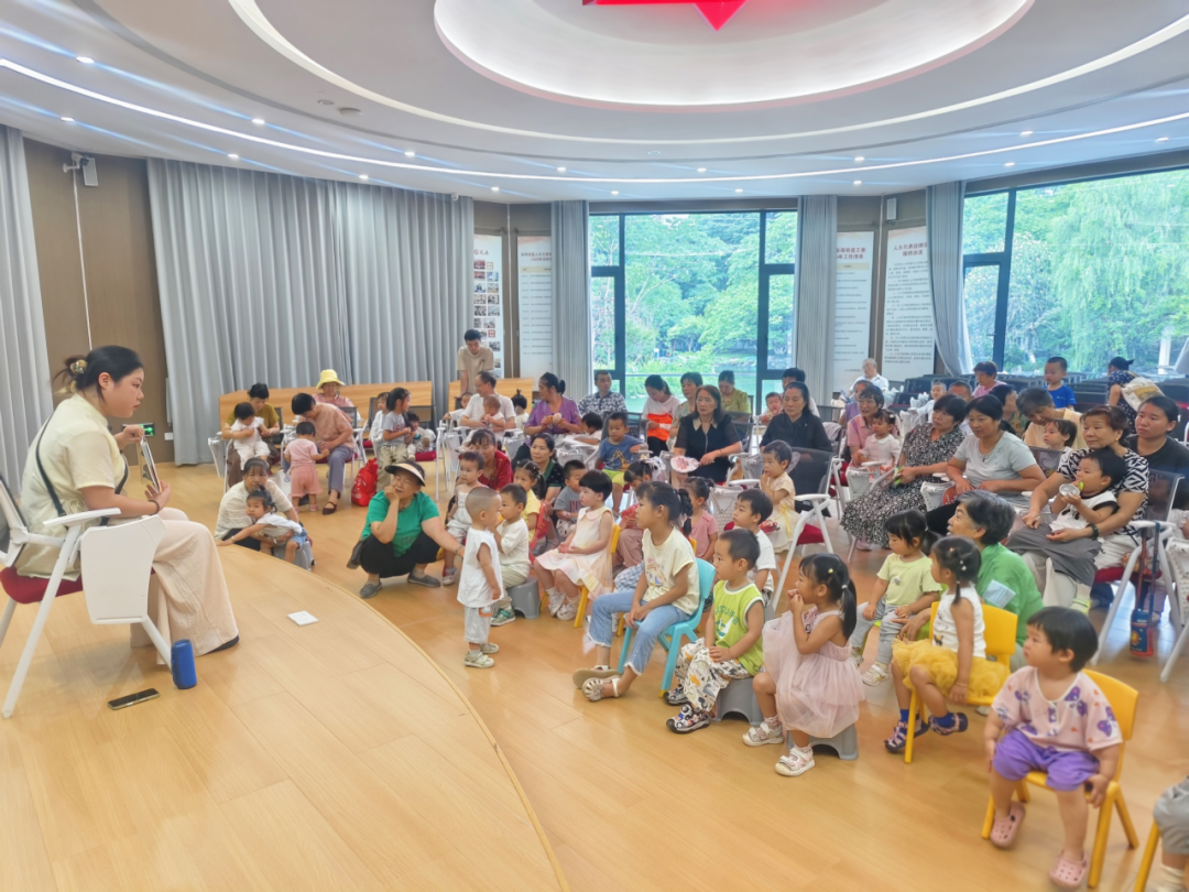 7月9日公益亲子故事会在映荷厅开展,辖区40余户亲子家庭自发参与。本轮故事会不仅由志愿者讲解、演绎绘本故事,也引导家长参与互动,关注孩子的健康成长。绘本结束后志愿者还对消防安全、禁毒知识、生态环保进行了普及。