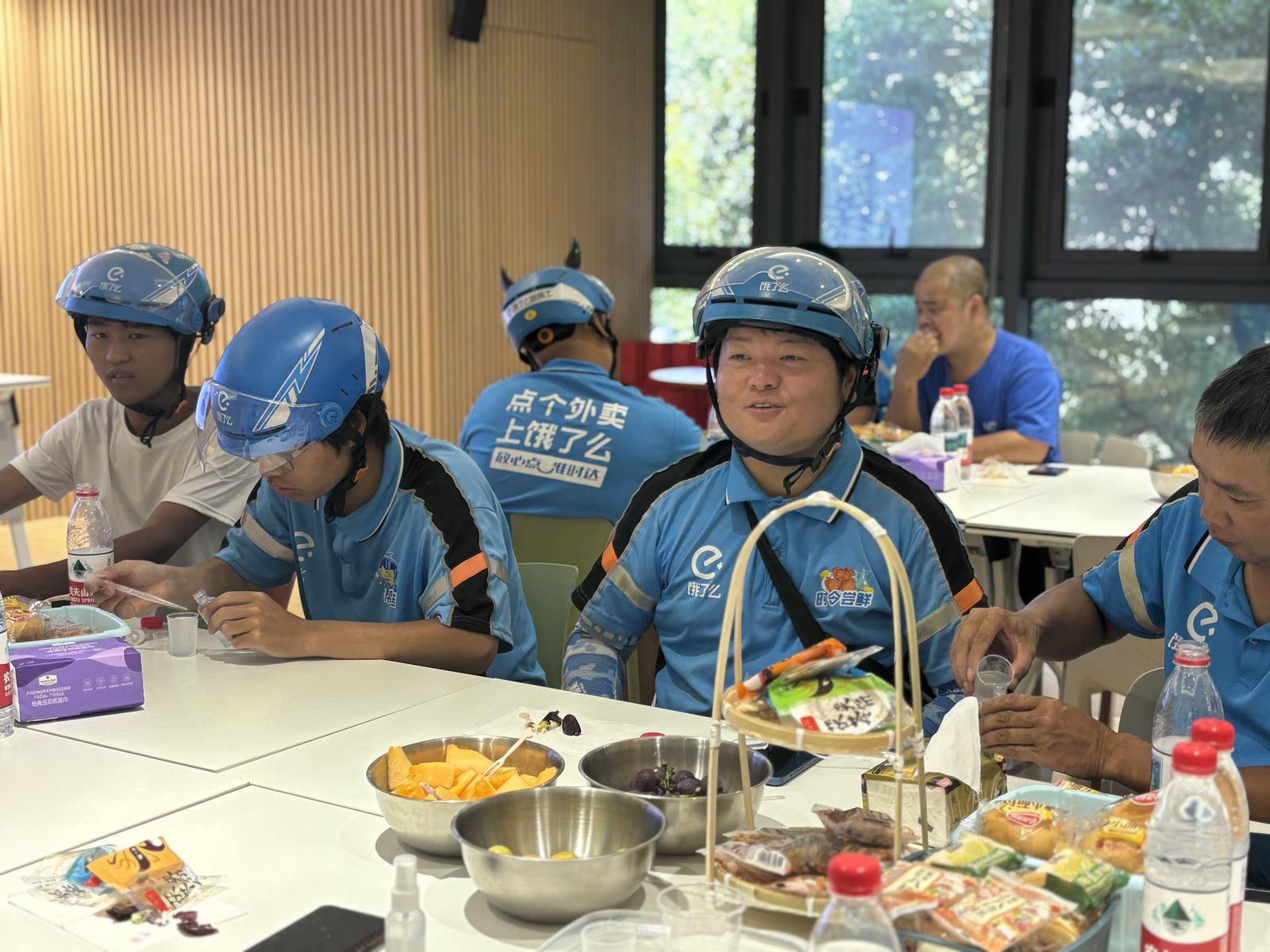 活动现场,社区工作人员早早准备好新鲜水果、精致点心,让快递小哥们在忙碌之余能放松下来,边吃边聊。社区书记章燕瑜主动走到大家中间,与快递小哥们亲切交谈,细细询问他们日常的工作强度、配送路线难点、收入情况等,耐心倾听他们在工作中遇到的困惑与需求。