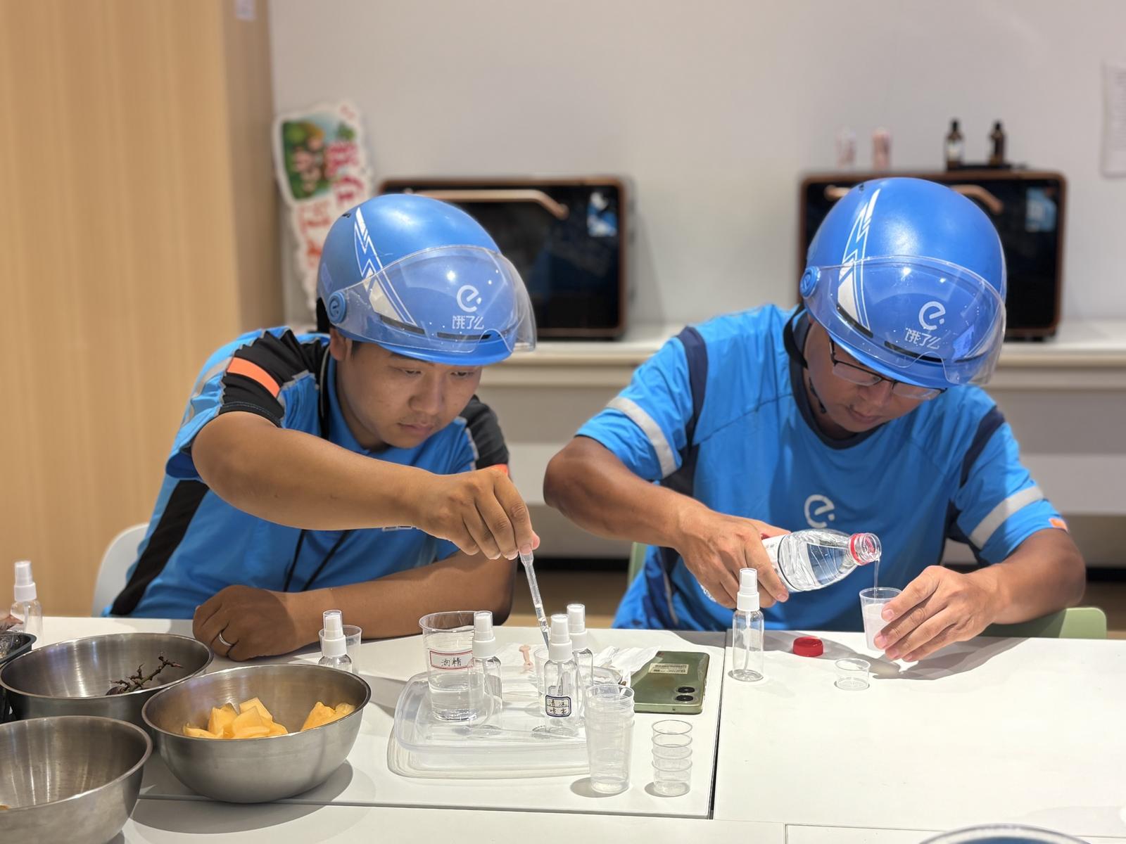 “昨天我喝到了好多杯立秋的奶茶,很多人点了外卖还专门备注给外卖小哥一杯,特别开心。”一位06年出生的小哥说。小哥们还在工作人员的指导下动手做起了夏季清凉喷雾,短暂的动手时间让小哥们在紧张的工作中体会到了一份轻松和愉悦。“天气热,你们跑在路上一定要注意防暑,多喝水、做好防晒,安全永远是第一位的。” 章书记的叮嘱朴实又暖心,让在场的快递小哥心里暖意融融。而亲手制作清凉喷雾的环节,更是让大家学到了实用的防暑小技巧,拿到自己制作的喷雾时,不少小哥脸上露出了开心的笑容。