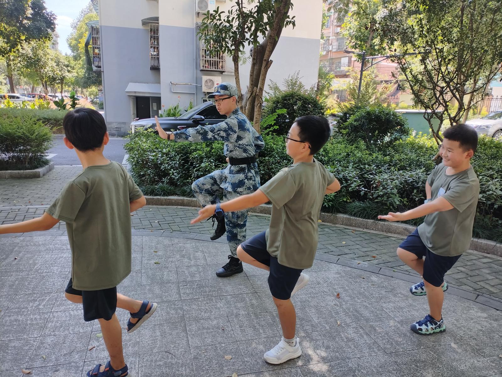 8月8日上午,景秀社区小公园内传来整齐划一的呐喊声,来自地铁工地的建设者子女在“超人叔叔乐学营”特别课堂上,跟随天鹰军创教官学习军体拳基础动作。这场由景秀社区党群服务中心、社区新时代文明实践站联合中铁四局杭州地铁15号线9标项目部举办的特别课程,让全民健身日迸发迷彩光芒。