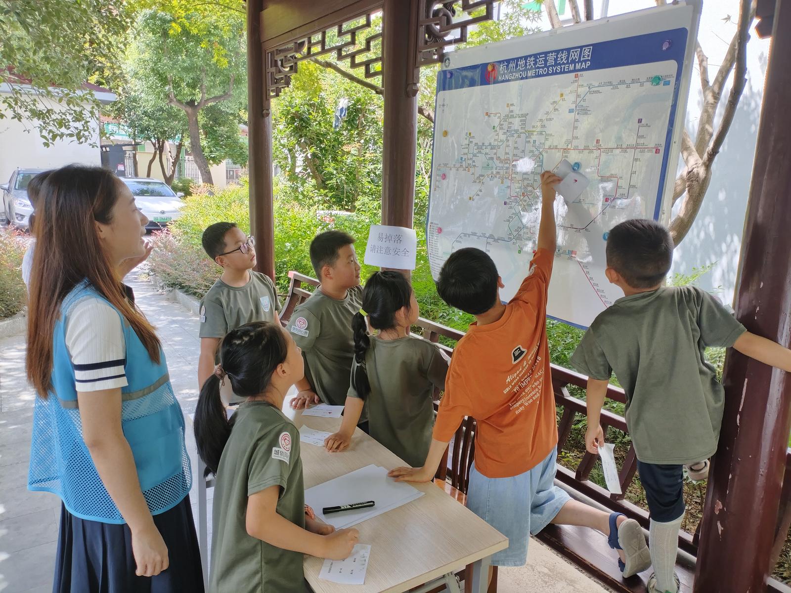 为丰富地铁建设者子女暑期生活,拓宽职业认知视野,近日,景秀社区党群服务中心、新时代文明实践站、团支部联合中铁四局杭州地铁15号线9标项目部,在“超人叔叔乐学营”中,精心策划开展了主题为“童行轨途探匠心”的趣味职业体验活动,为小候鸟们带来了一场“地铁职业大闯关”。