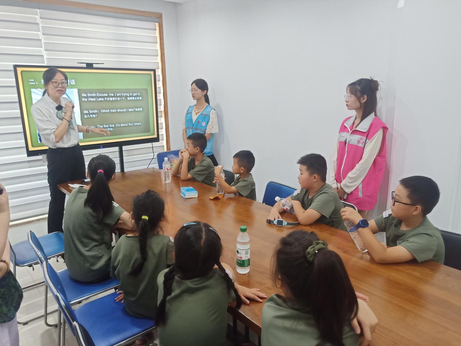 活动现场,社区未成年人保护站的工作人员化身“双语乘务员”,巧妙地运用角色扮演的教学方式,将语言学习融入地铁服务的真实场景之中。在轻松愉快的氛围里,“乘务员”引导孩子们走近杭州文化,了解这座城市的魅力,更核心的教学内容围绕地铁出行必备的英语知识展开。孩子们兴趣盎然地学习了“subway station”、“ticket gate”等日常出行中的高频英语词汇,为未来的城市探索打下语言基础。