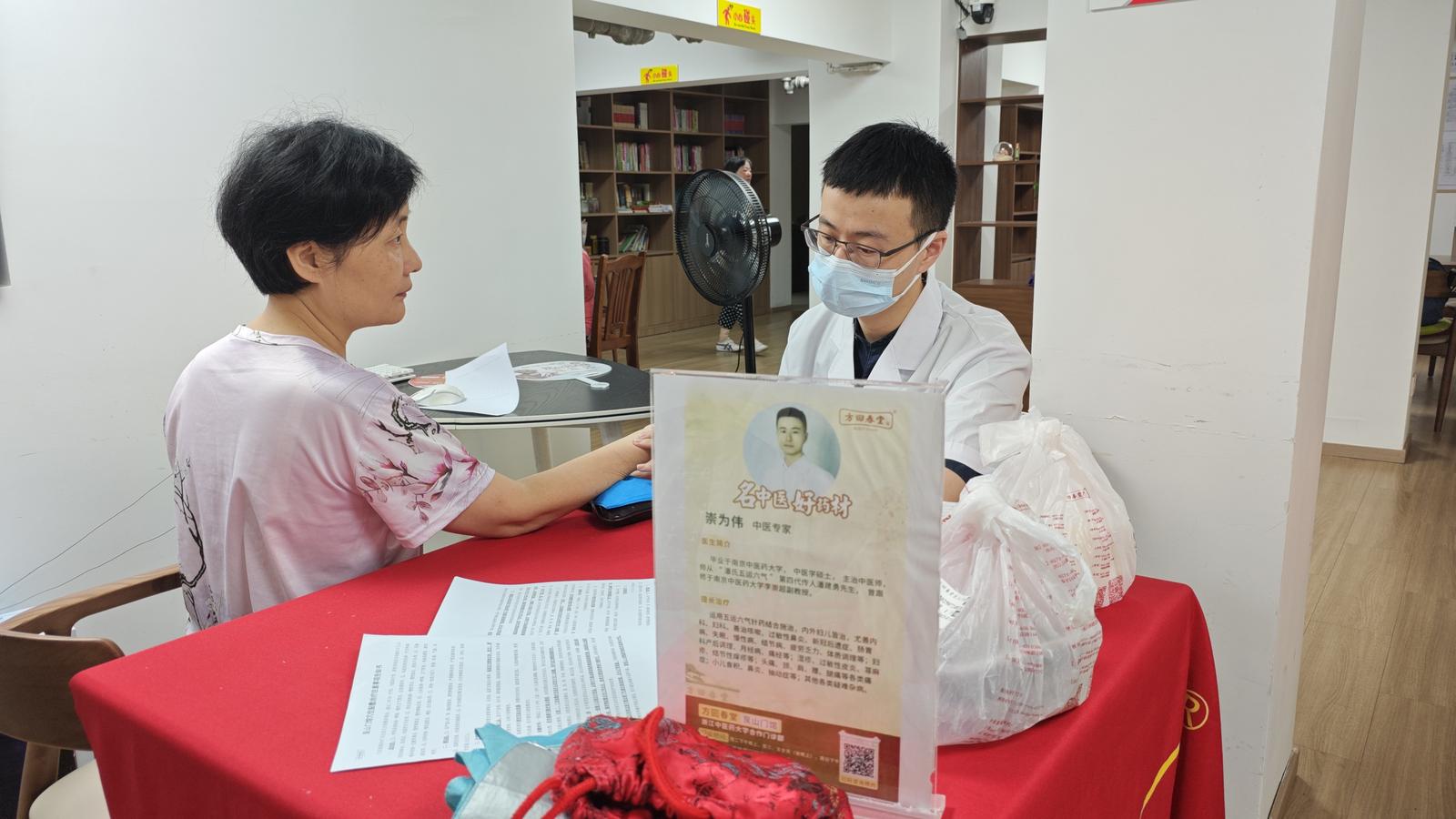 方回春堂中医给居民把脉