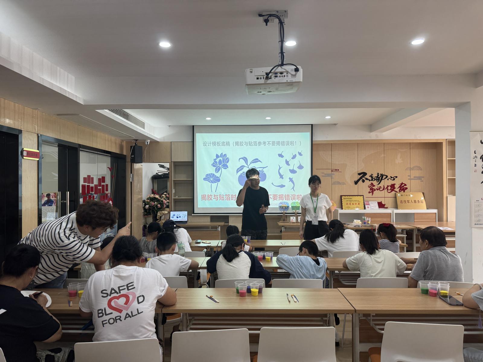为丰富辖区青少年暑期生活,感受金箔漆扇韵味。庆春门社区新时代文明实践站开展“童心绘扇·‘箔’采生辉”活动,亲手制作金箔彩砂扇。