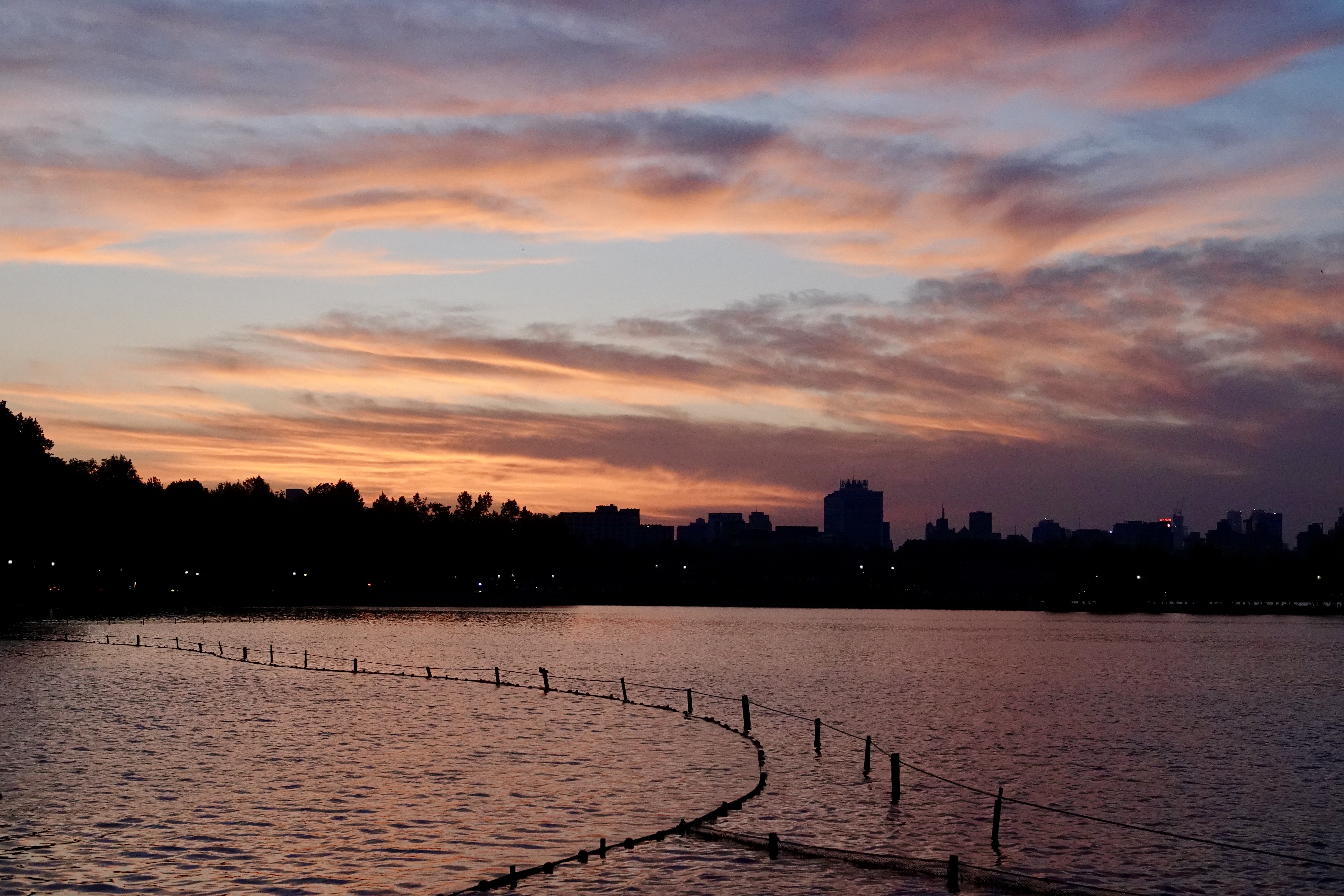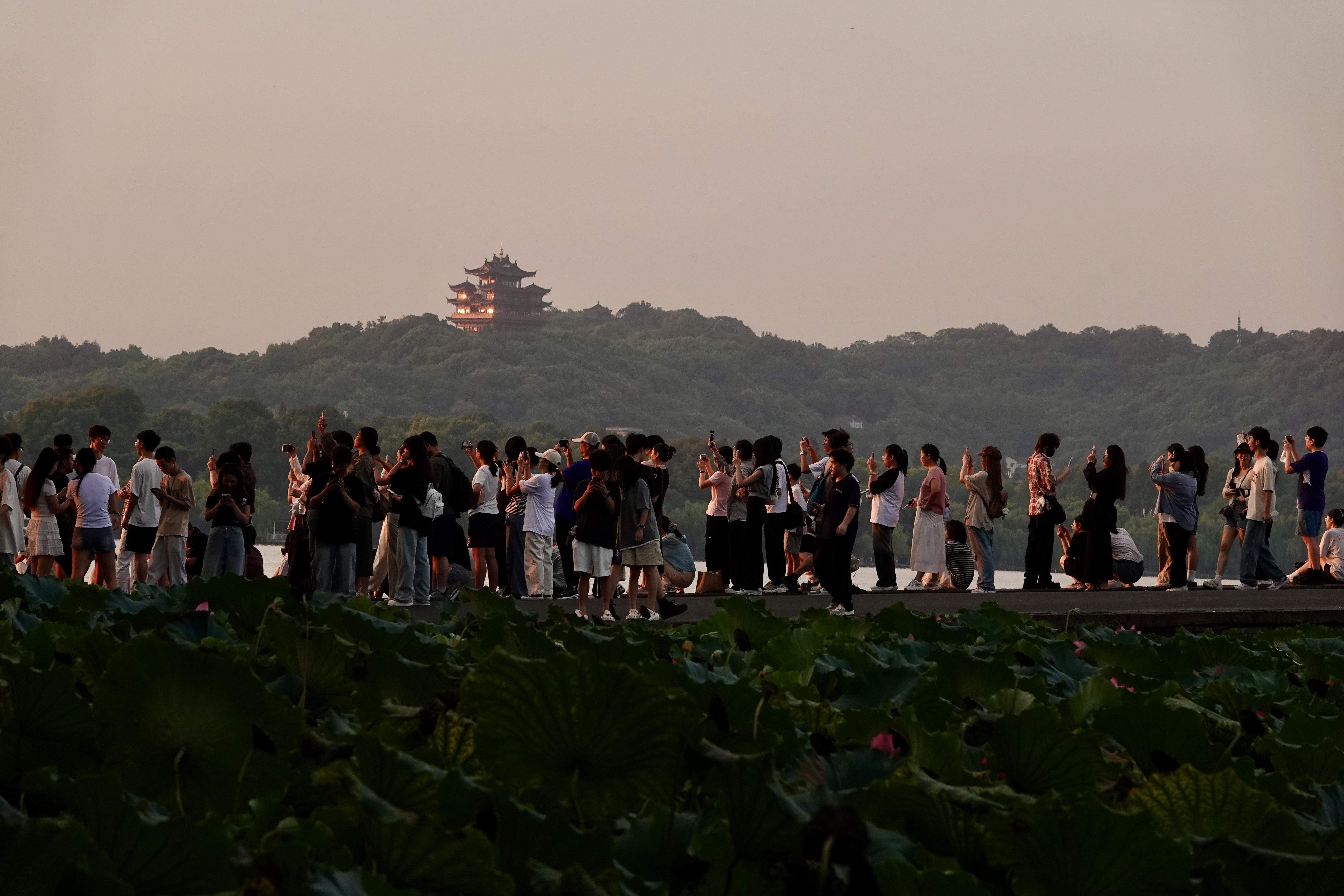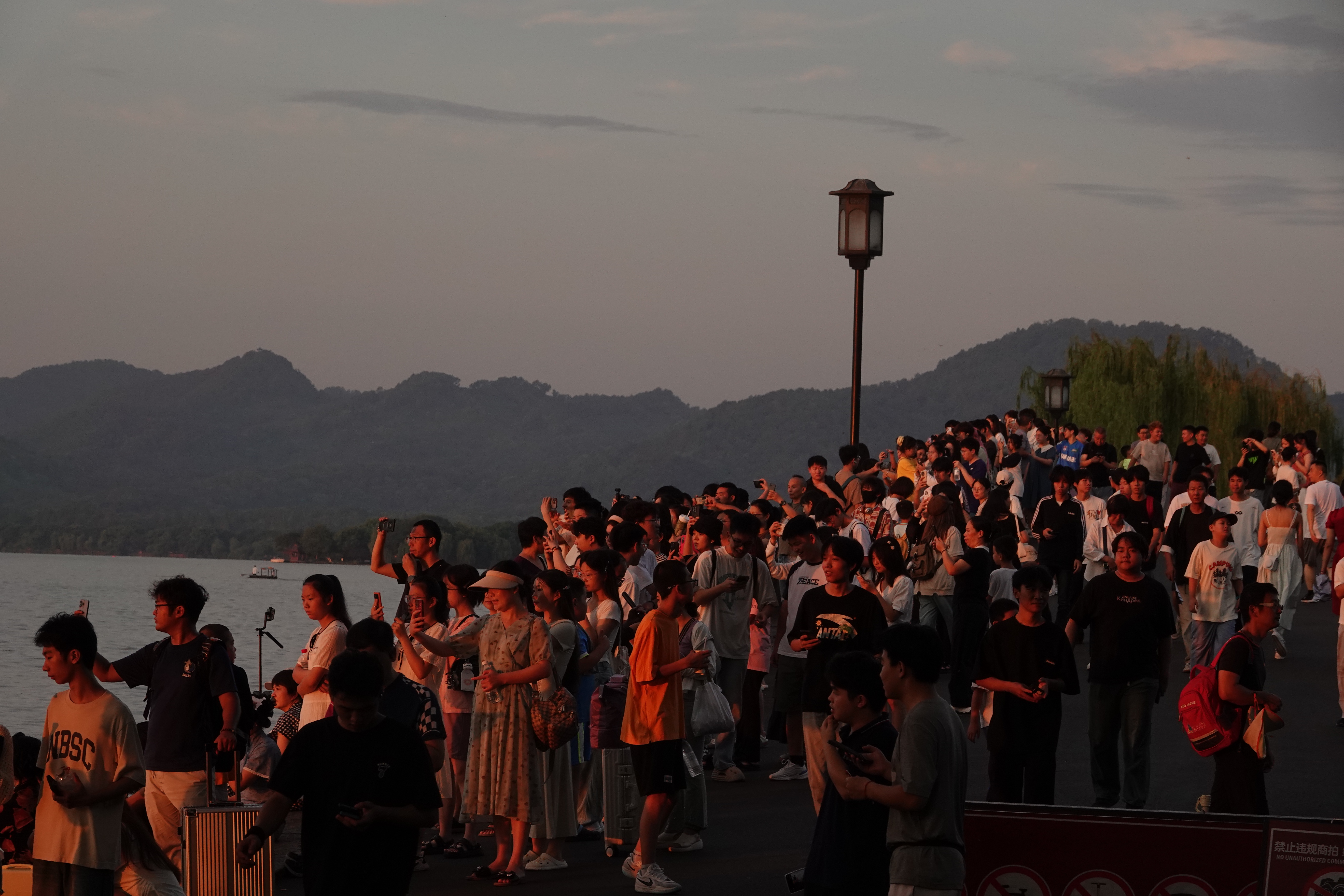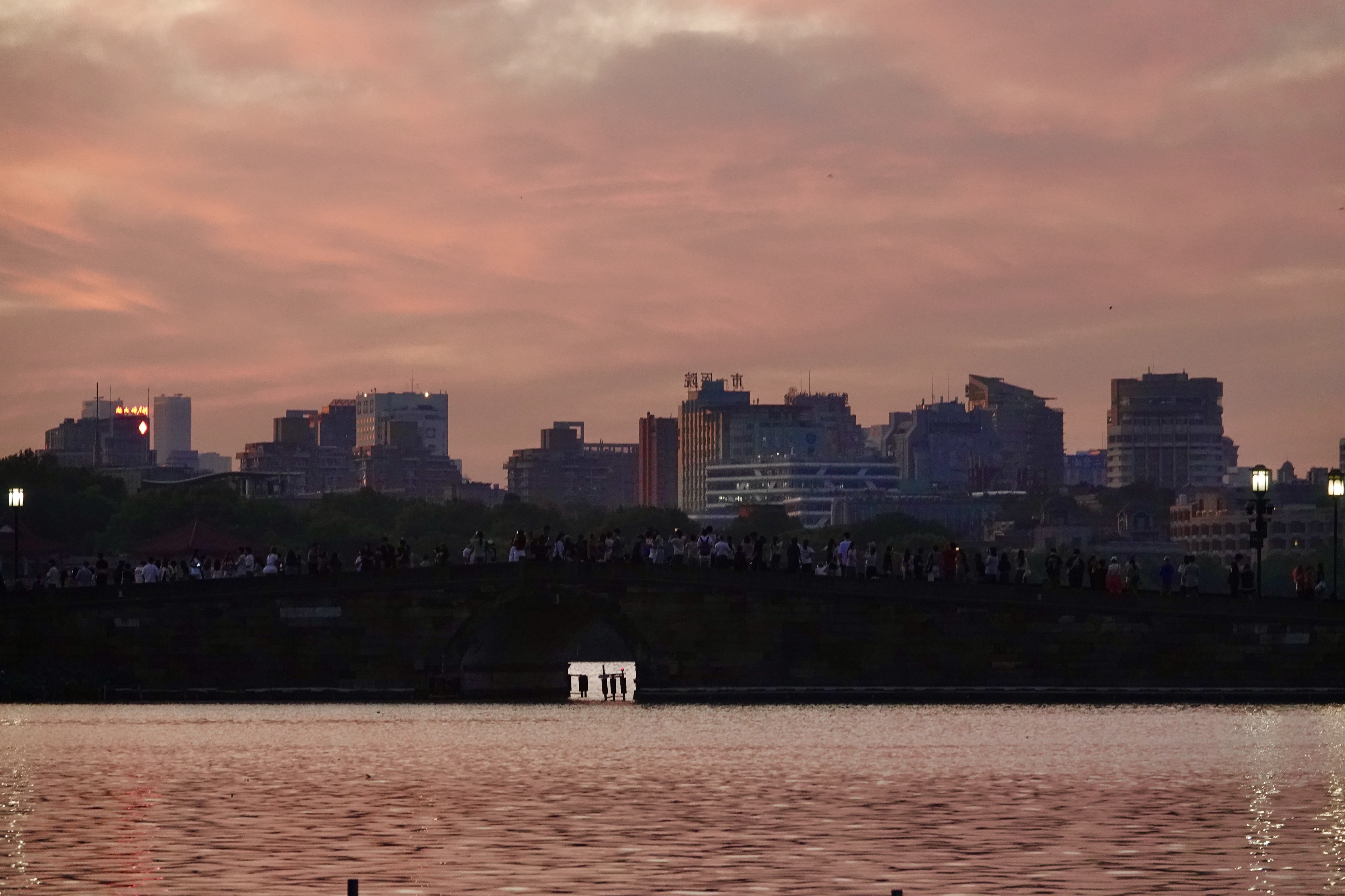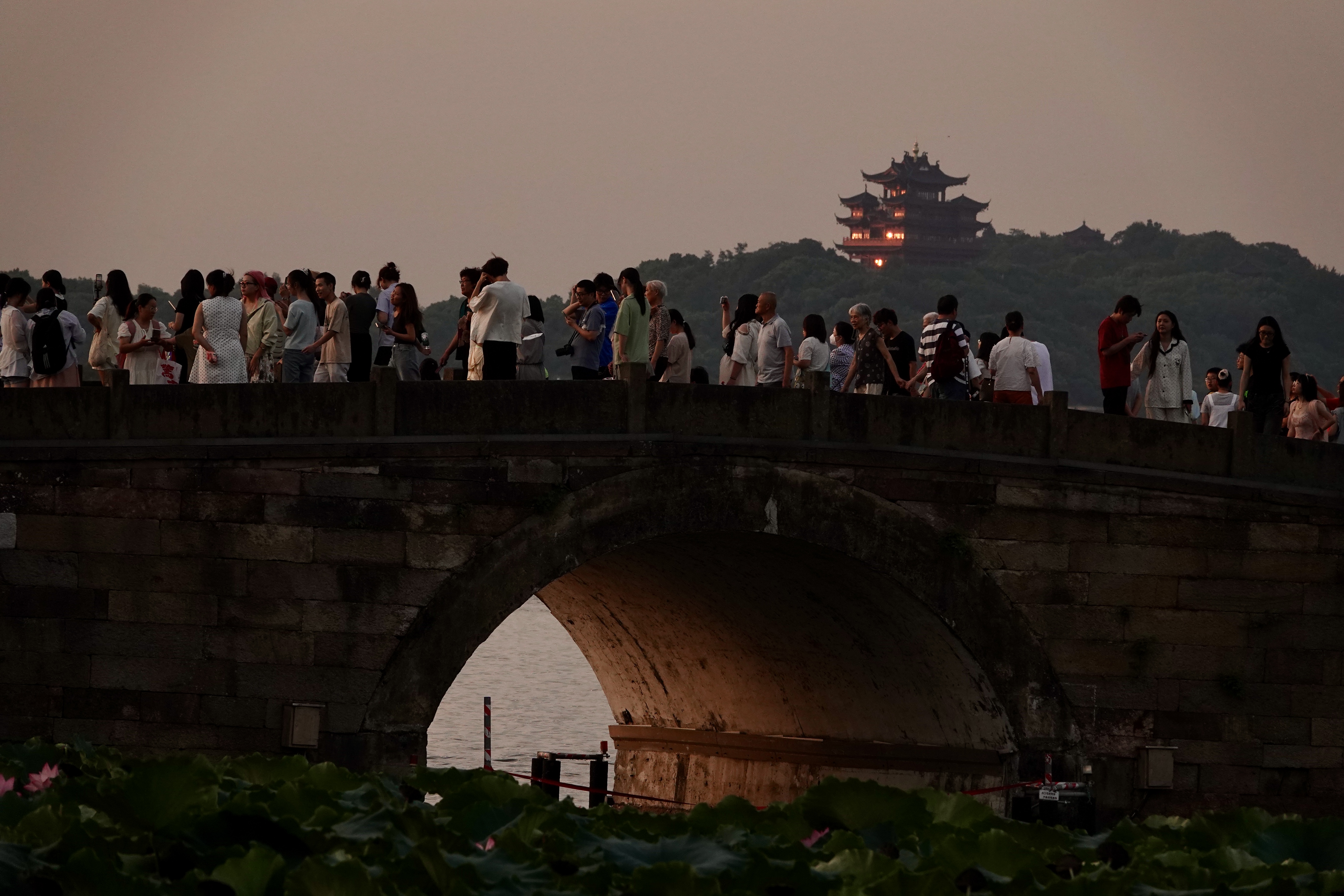 【西湖朝霞似火】#在这里爱上一座城#谚语道“朝霞不出门,晚霞行千里”,今日杭州傍晚的暴雨早已被晨霞“官宣”,“见证人”是断桥上的人山人海,是西湖边匆匆赶路却为朝霞驻足欣赏的人们。或许,这是七夕前的浪漫预告。(2025年8月,西湖、断桥,杨晓轩摄)