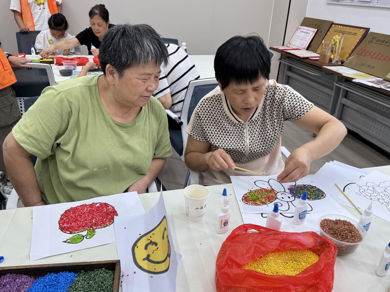 活动过程中,大家相互交流、互相帮助,分享着自己的创意和技巧。遇到困难时,社区志愿者也会及时上前给予指导和帮助,鼓励大家大胆尝试。经过一番努力,一幅幅色彩斑斓、独具匠心的五谷贴画作品逐渐成型,每一幅作品都饱含着创作者的心血和情感。