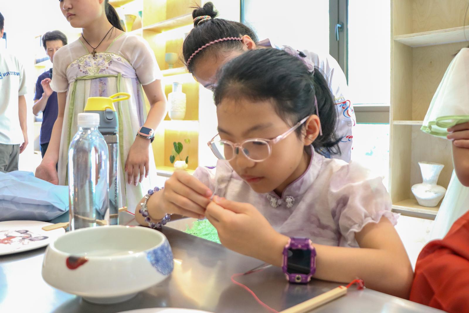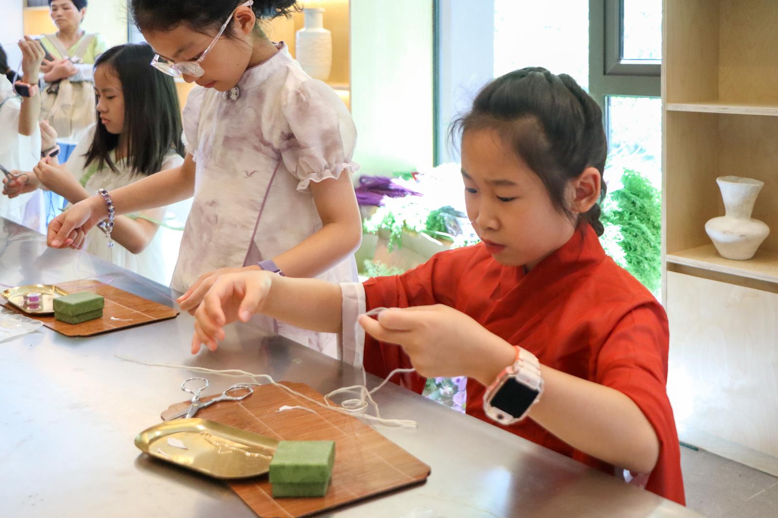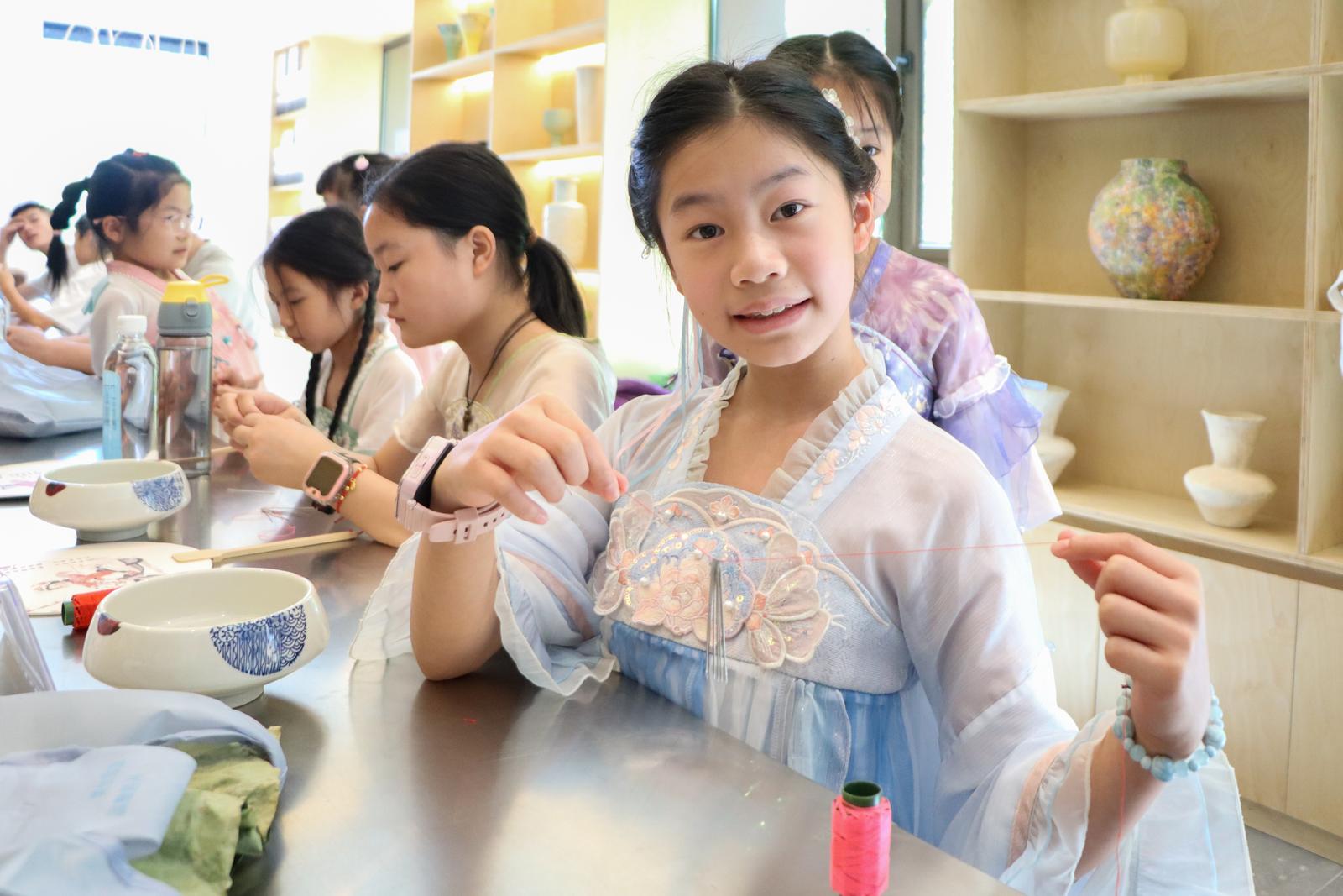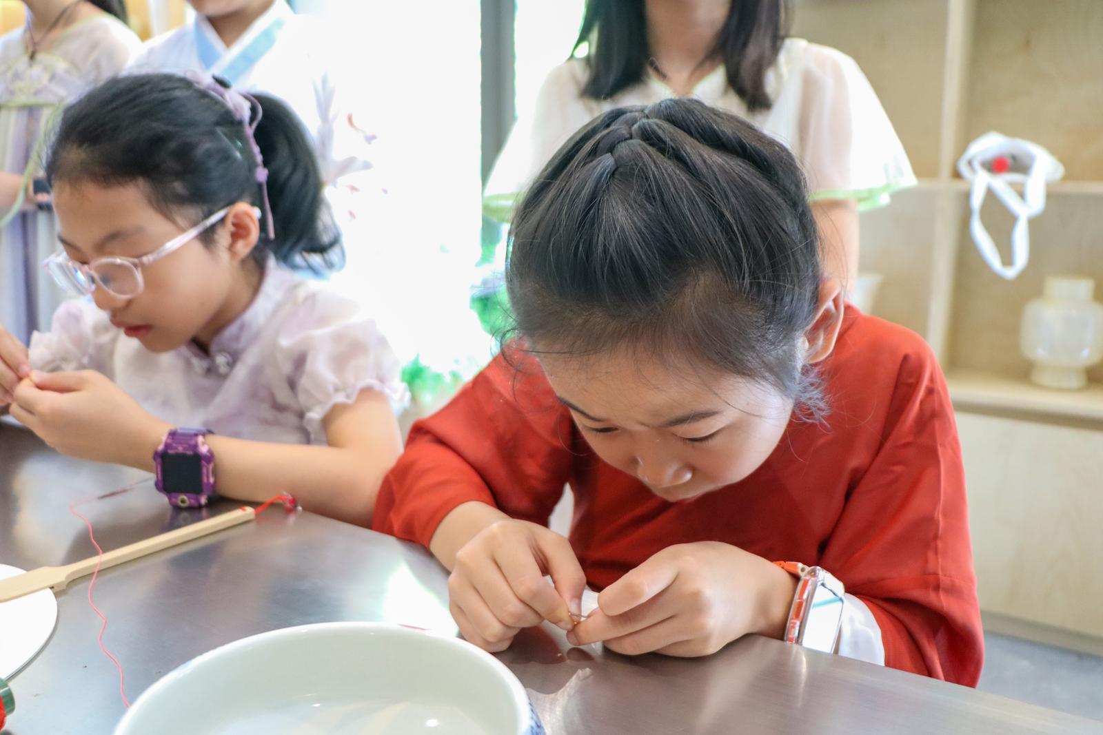而室内的沉浸式体验环节,更是让孩子们过足了“非遗瘾”——每个项目都源自传统七夕风俗,还有专业老师手把手指导,好玩又能学技能。