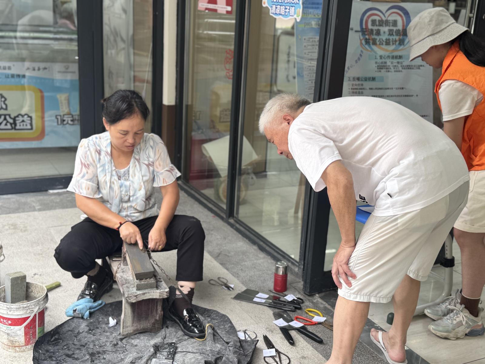 8月29日上午,景苑社区联合汇泉为老服务中心在景养苑举办了 “便民服务进社区” 活动,有磨剪刀、理发、洗锅底、健康义诊四项服务,很多居民来参加,现场很热闹。上午 8 点半,社区工作人员和志愿者就来布置现场,9 点活动正式开始。居民们有序排队,都很期待。磨剪刀的地方,志愿者帮居民把钝剪刀磨得很锋利。3 号楼张阿姨说:“外面难找磨剪刀的,社区送服务上门真方便。”当天共磨了近 50 把剪刀、刀具。理发区人很多,以老人和孩子为主。合作理发店的理发师手艺好,免费给 30 多人理了发。72 岁的李爷爷理完说:“不用出门就能理发,太省事了。”洗锅底时,志愿者用清洁剂和钢丝球,把居民家的旧锅洗得发亮。王女士看着干净的锅说:“这锅又能用了,服务很实在。”健康义诊区最受欢迎,医生帮居民量血压、测血糖,还讲健康知识,给老人常见病提建议。刘奶奶说:“在家门口就能看医生,真好。” 当天有 60 多人问诊,发了 100 多份健康手册。中午 11 点半活动结束。社区负责人说,以后会常办这类便民活动,让居民更有幸福感,把社区打造成温暖的家。