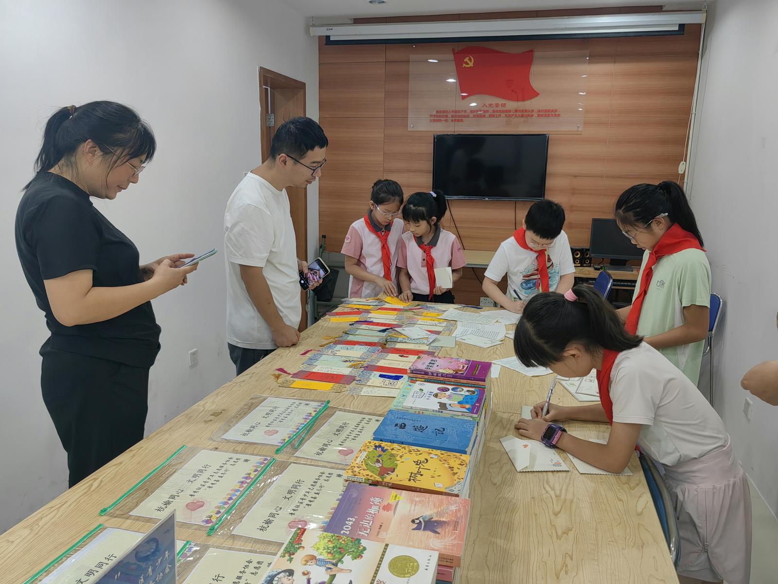 8月27日上午,景秀社区新时代文明实践站联合社区团支部在社区党群服务中心内成功举办“以书献爱 以信交友”青少年公益结对活动。继5月“青春书驿”首次行动为广东韶关送去50余册书籍后,此次“凯旋红巷”少年们再次行动,在志愿者协助下,将筛选出的80余册爱心书籍与手写书信送往陕西省榆林市巴拉素镇中心小学,开启跨省阅读友谊之行。
