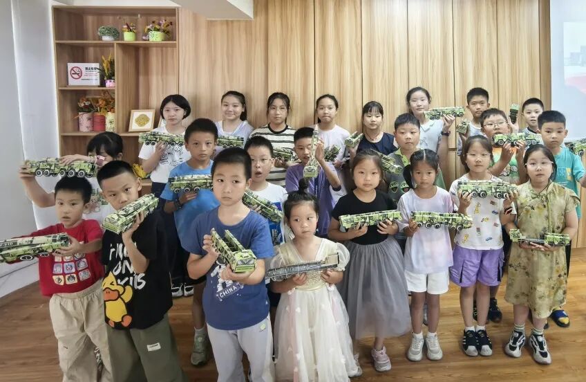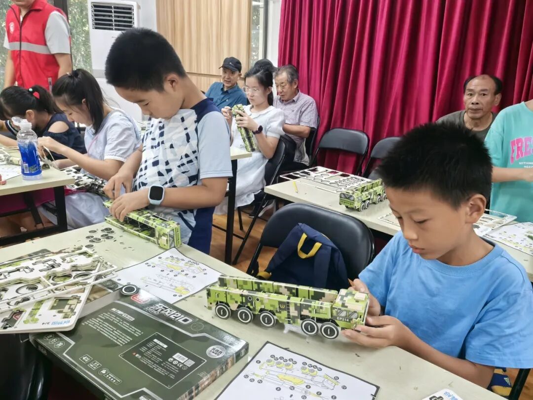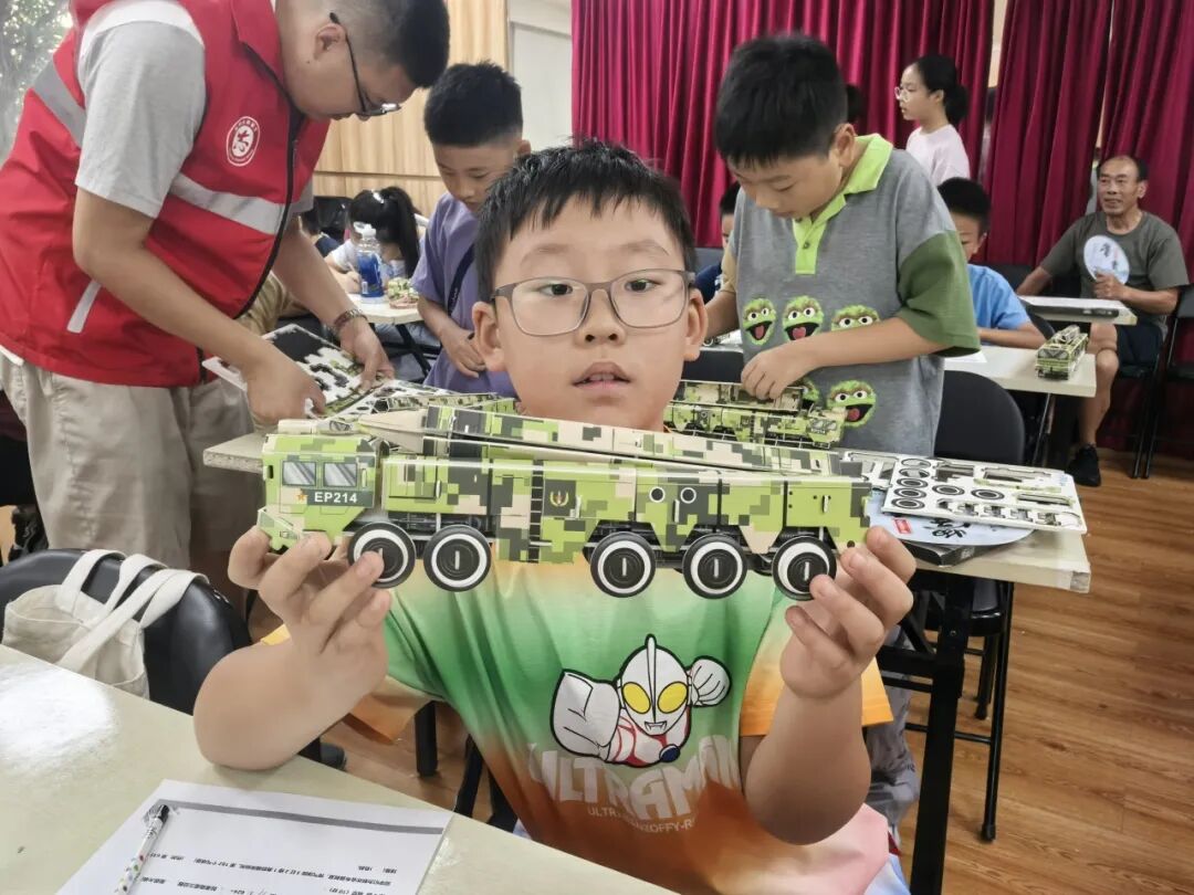 在手工环节,志愿者为每位青少年分发导弹车立体拼图材料包,并耐心讲解拼装步骤。大家迅速投入,对照图纸认真拼接,遇到困难时互相帮助、共同探讨。经过近一小时的努力,一个个形态逼真的导弹车模型陆续完成,青少年们捧着自己的作品,脸上洋溢着自豪的笑容。