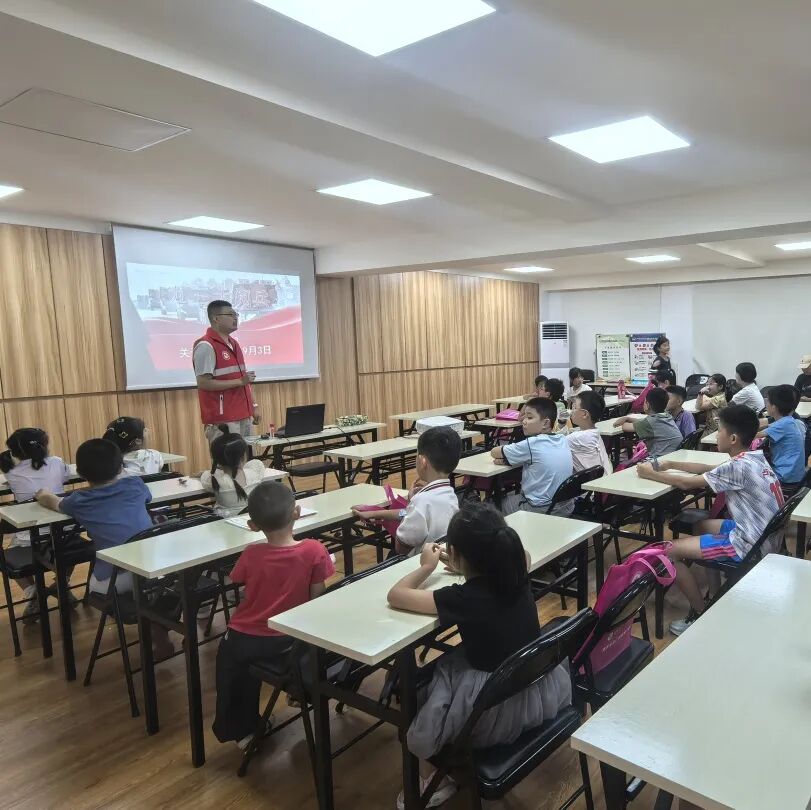 活动伊始,社区志愿者以生动的历史故事为切入点,详细讲解“九三”抗战胜利纪念日的由来与历史意义,从抗日战争的重大战役到无数先烈的英勇事迹,让青少年深刻理解和平的来之不易。随后,志愿者播放往年国庆大阅兵影像资料,当威武的受阅方阵、先进的武器装备出现在屏幕上时,现场响起阵阵惊叹,青少年们纷纷表示感受到了祖国的强大。