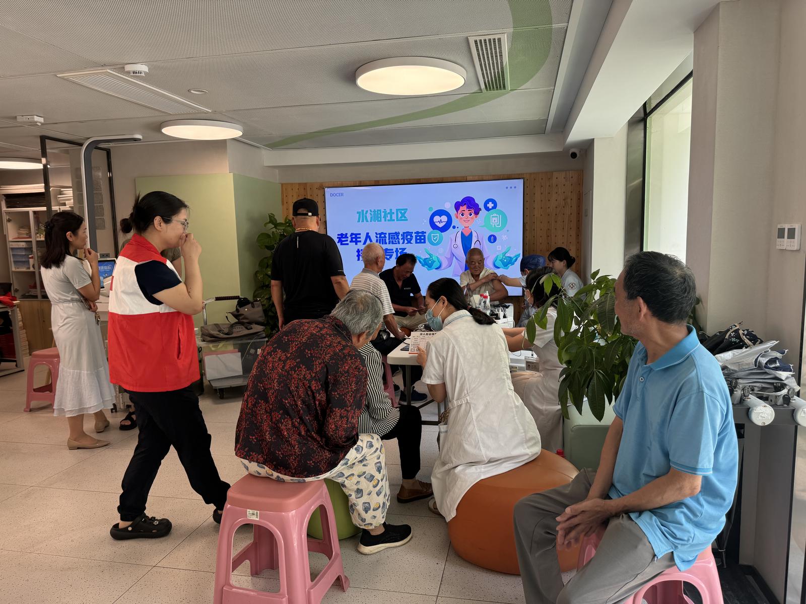 夏末余热未消,关爱先行送达。9月4日下午,水湘社区在幸福邻里坊为60周岁以上老年人开展的免费流感疫苗专场接种活动圆满落幕,为社区长者筑起一道温暖的"健康防护墙"。
