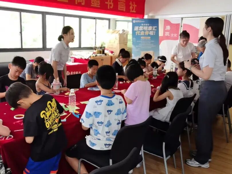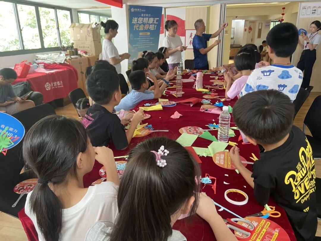 在剪纸体验的同时,南京银行志愿者以 “剪纸材料要珍惜,财富积累靠规划” 为切入点,通过趣味问答互动,将储蓄、资源规划等财商知识融入其中。“就像剪花朵需要一步步叠纸、裁剪,存钱也需要每天一点点积累。” 志愿者的生动讲解,让孩子们在动手实践中领悟到 “文化财富” 与 “物质财富” 的双重意义。