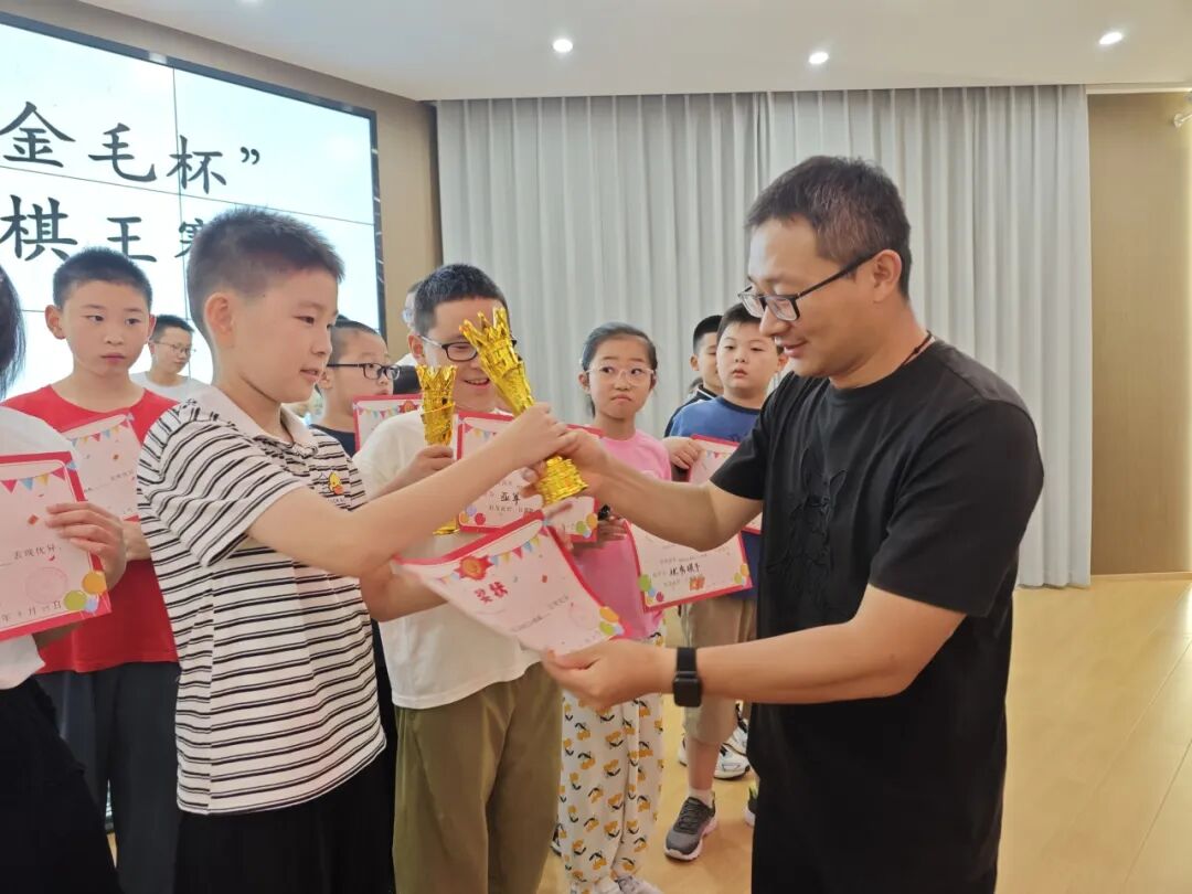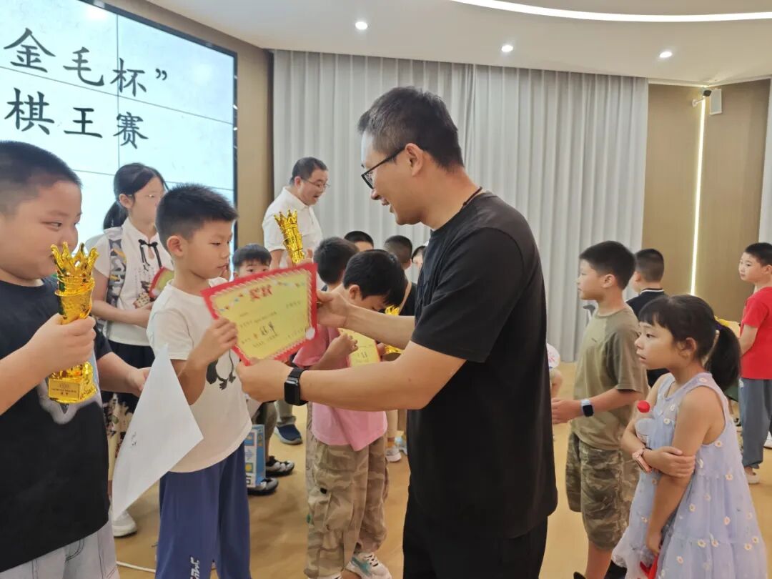 经过多轮激烈比拼,各组别分别决出优胜者,社区与金毛棋院为获奖选手颁发荣誉证书与奖杯。
