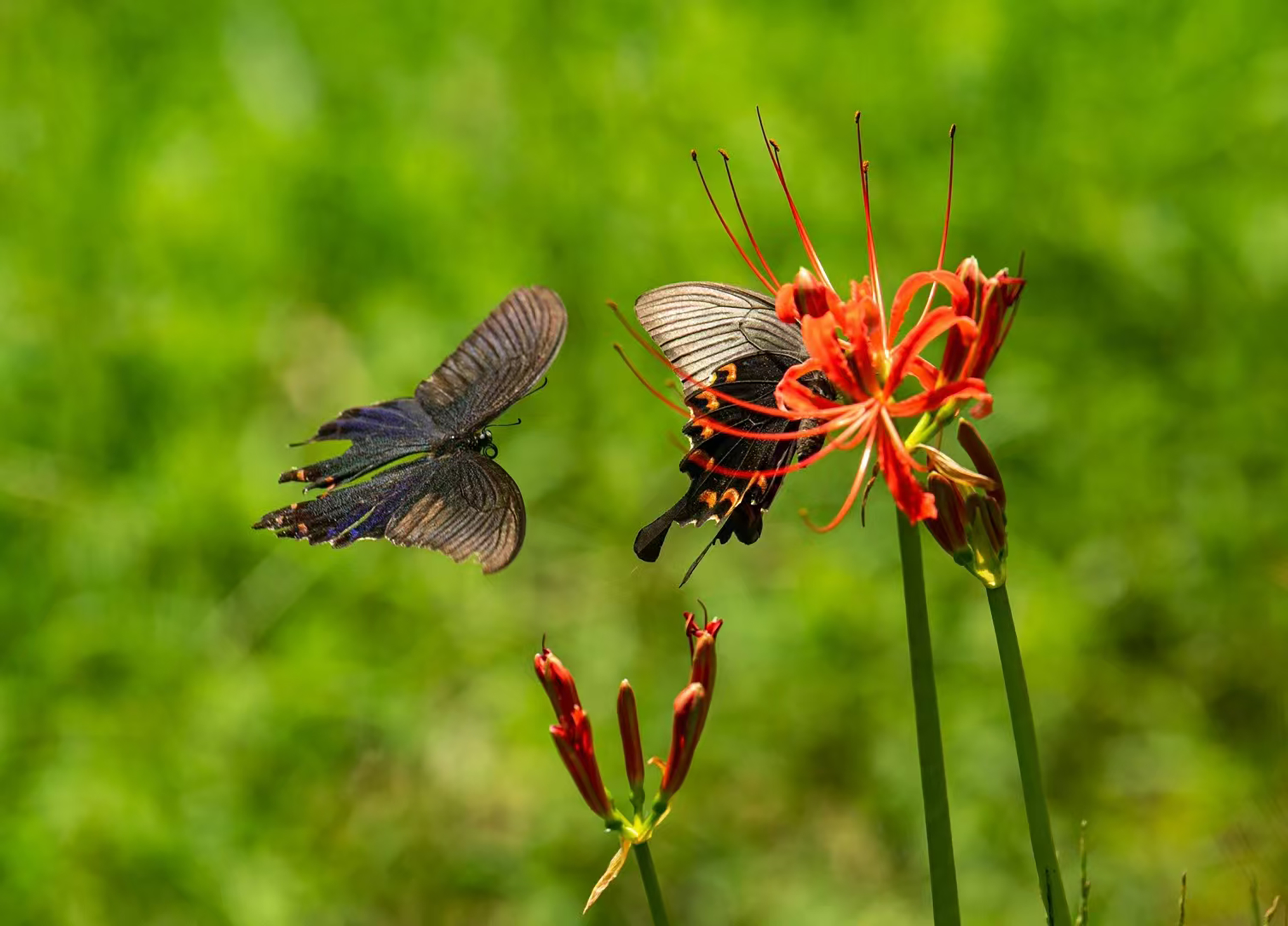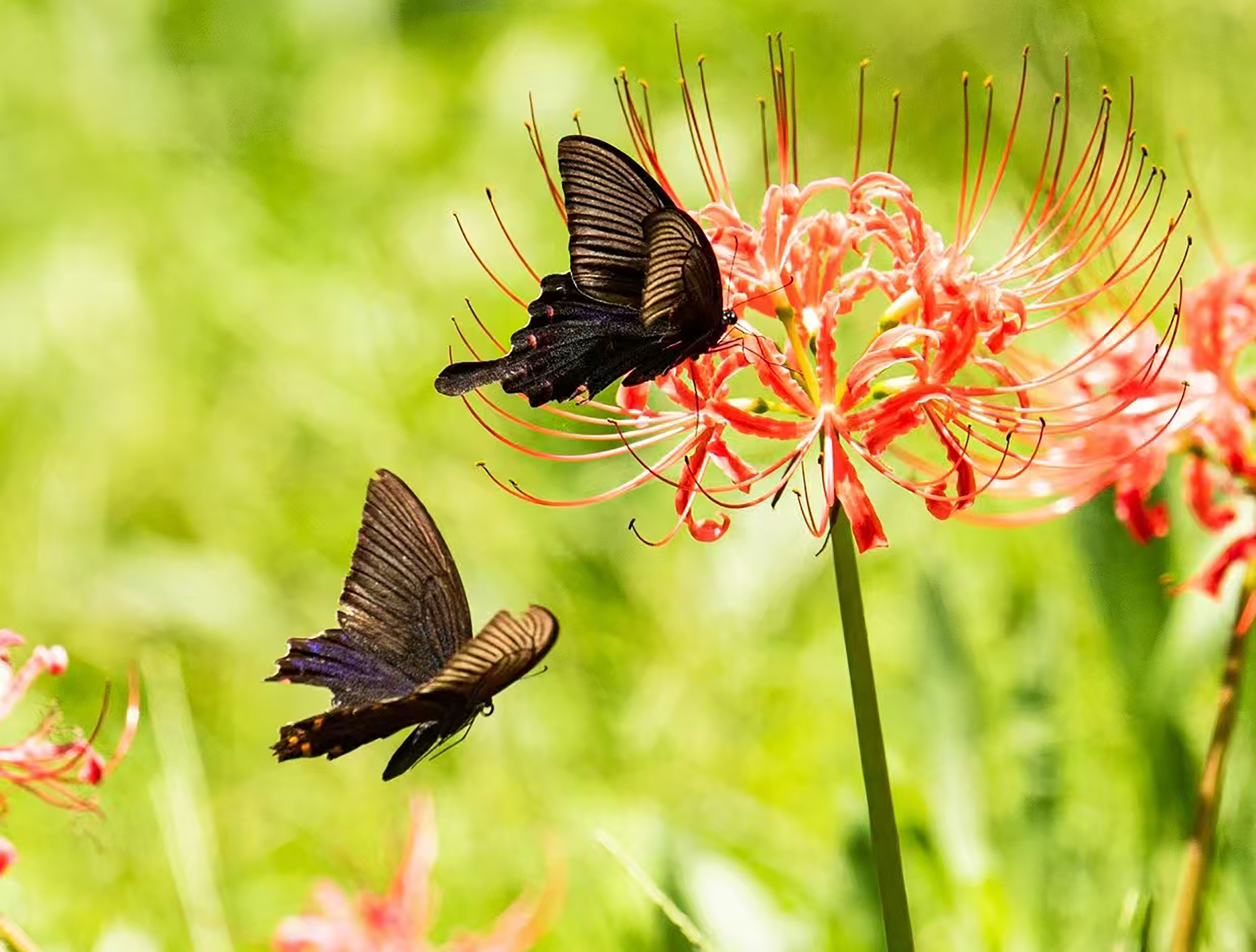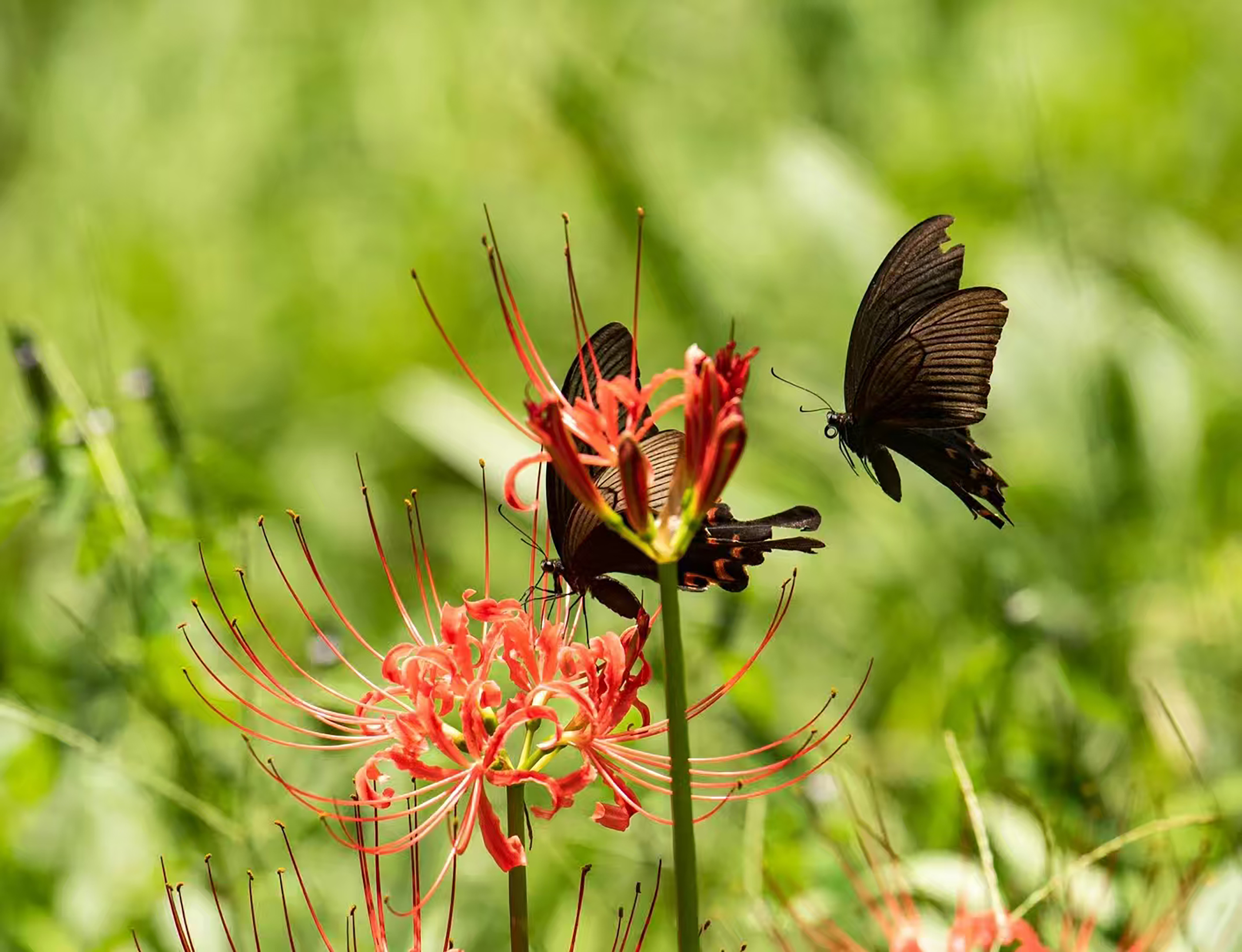 秋天的第一片灿烂在江洋畈绽放!彼岸花,学名石蒜,花开时,热烈的红或明媚的黄绽放在幽暗间,似用尽所有力气去绚烂,可花茎上,寻不到一片绿叶的踪迹。等花谢去,绿叶才缓缓舒展,在阳光下蓬勃生长,却再等不到那一抹惊艳的花色。就像一场注定错过的相逢,花与叶,各自在属于自己的时光里美丽,用这种独特的方式,诉说着那关于别离与思念的、亘古的故事。
