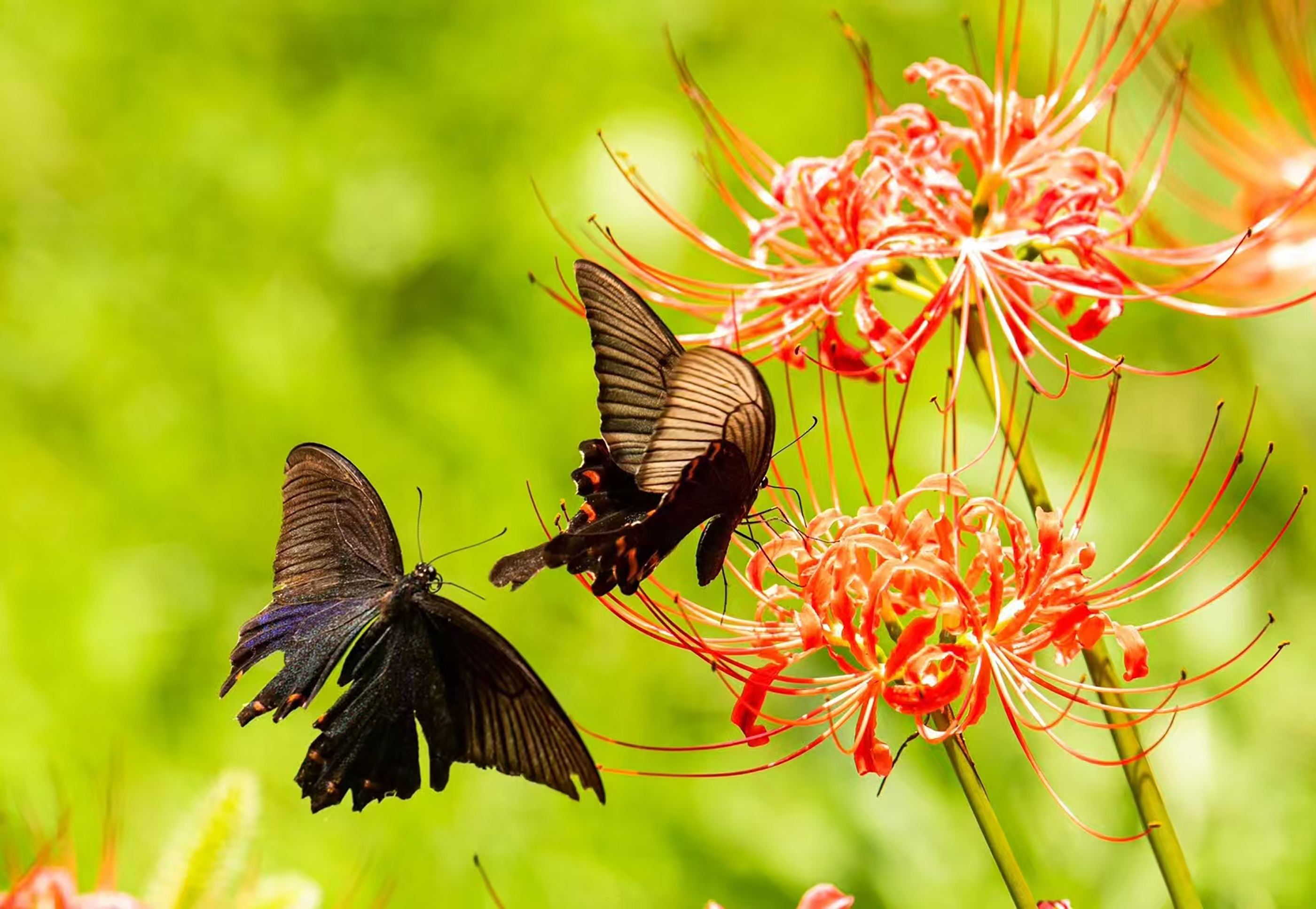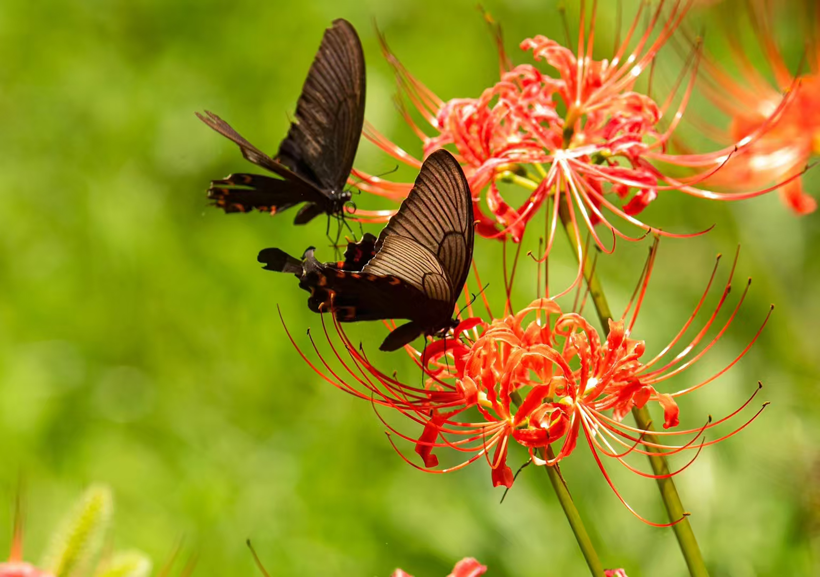 《蝶恋花·彼岸花》中写道“彼岸花开开彼岸,独泣幽冥,花艳人不还;秋天的第一片灿烂在江洋畈绽放!彼岸花,学名石蒜,花开时,热烈的红或明媚的黄绽放在幽暗间,似用尽所有力气去绚烂,可花茎上,寻不到一片绿叶的踪迹。等花谢去,绿叶才缓缓舒展,在阳光下蓬勃生长,却再等不到那一抹惊艳的花色。就像一场注定错过的相逢,花与叶,各自在属于自己的时光里美丽,用这种独特的方式,诉说着那关于别离与思念的、亘古的故事。