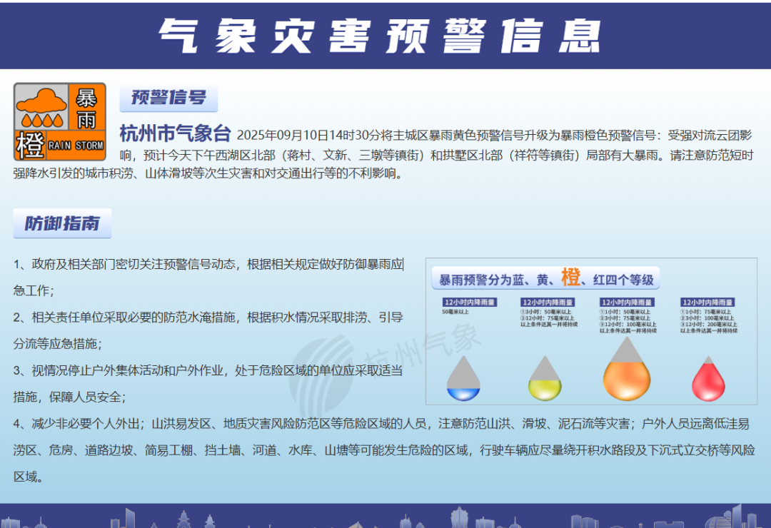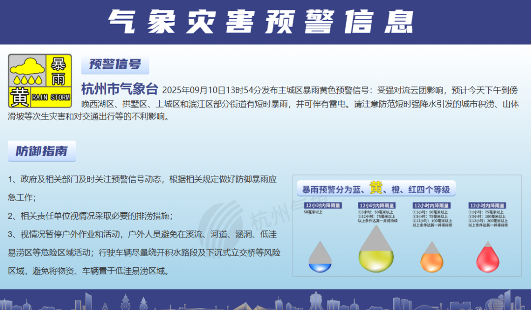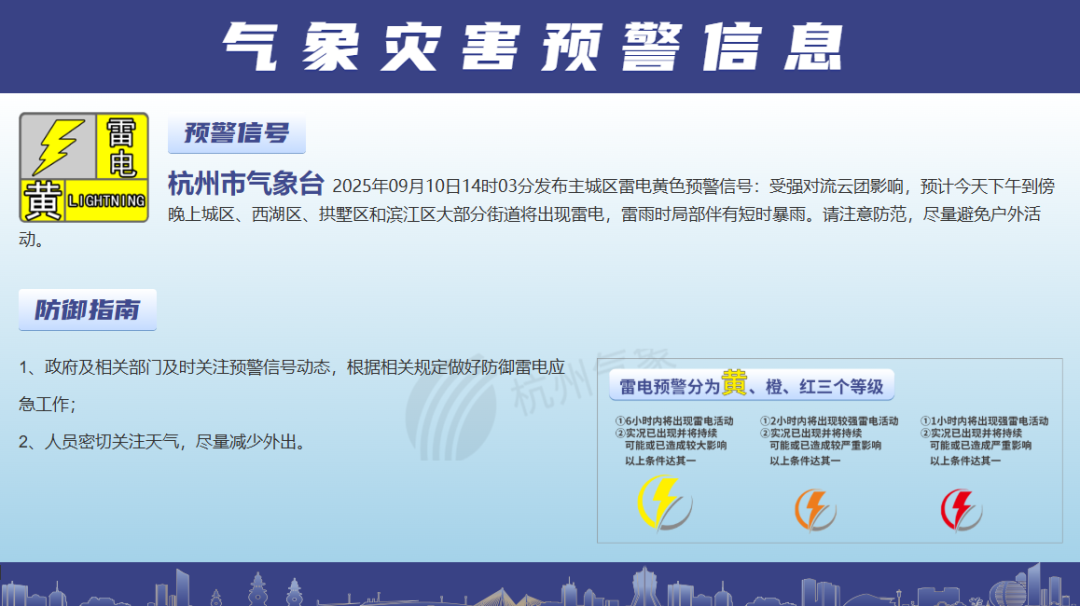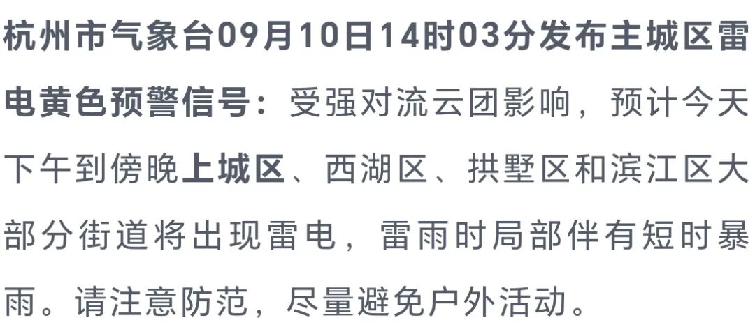 刚刚,杭州市气象台连发预警!受低层冷空气和西南风输送的水汽的影响,今天杭州有明显雷阵雨天气。提醒大家,强降水时段尽量别出门!除此之外,体感上的明显凉意,也在暗示诸位小伙伴,杭州的高温真的结束了!