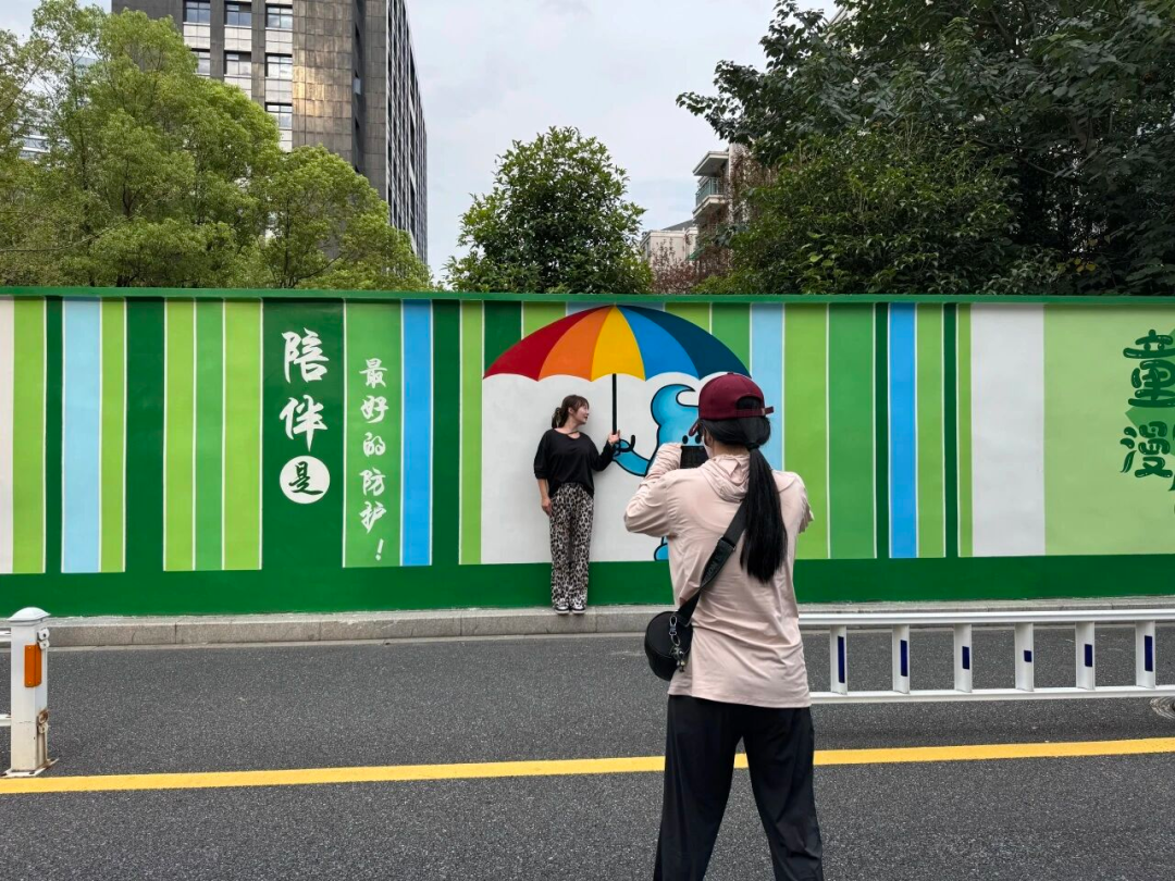 “你看这面墙,以前斑驳掉皮,路过都想绕着走,现在成了孩子们上学路上的‘打卡点’,我们买菜路过也总忍不住多看两眼!”家住五福二苑的王阿姨指着钱环支路的墙绘,难掩欣喜。