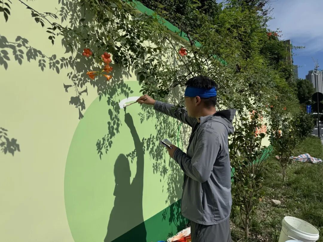 这幅墙绘的诞生,是区部门、街道、学校、社区多方合力的成果。从多次专题座谈敲定方向、方案细化落地,到材料精心选购,再到顶着酷暑现场绘制,历时四个月的筹备与赶工,最终高效完成了这场“旧墙焕新”。
