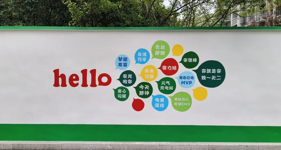新学期初始,墙绘在钱江新城实验小学微信群里提前揭幕,获得教师们的纷纷点赞。
