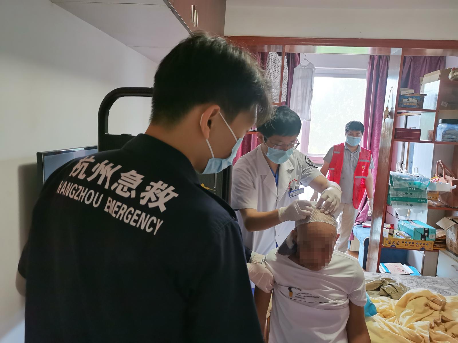 得知求助人是贺师傅,吴杰心中一紧。考虑到老人患有脑梗,此前已多次发生过晕倒情况,独居家中一旦出事后果不堪设想。放下电话,吴杰立即和同事马晨拎起应急包,骑上电瓶车往老人家里赶,全程仅用3分钟便抵达现场。