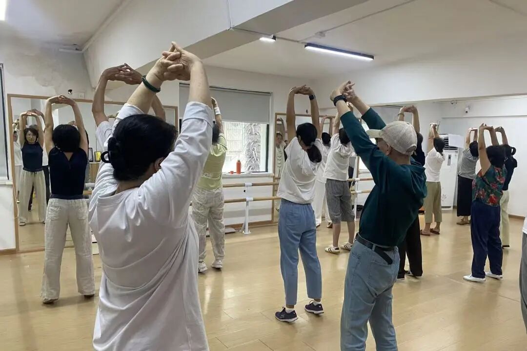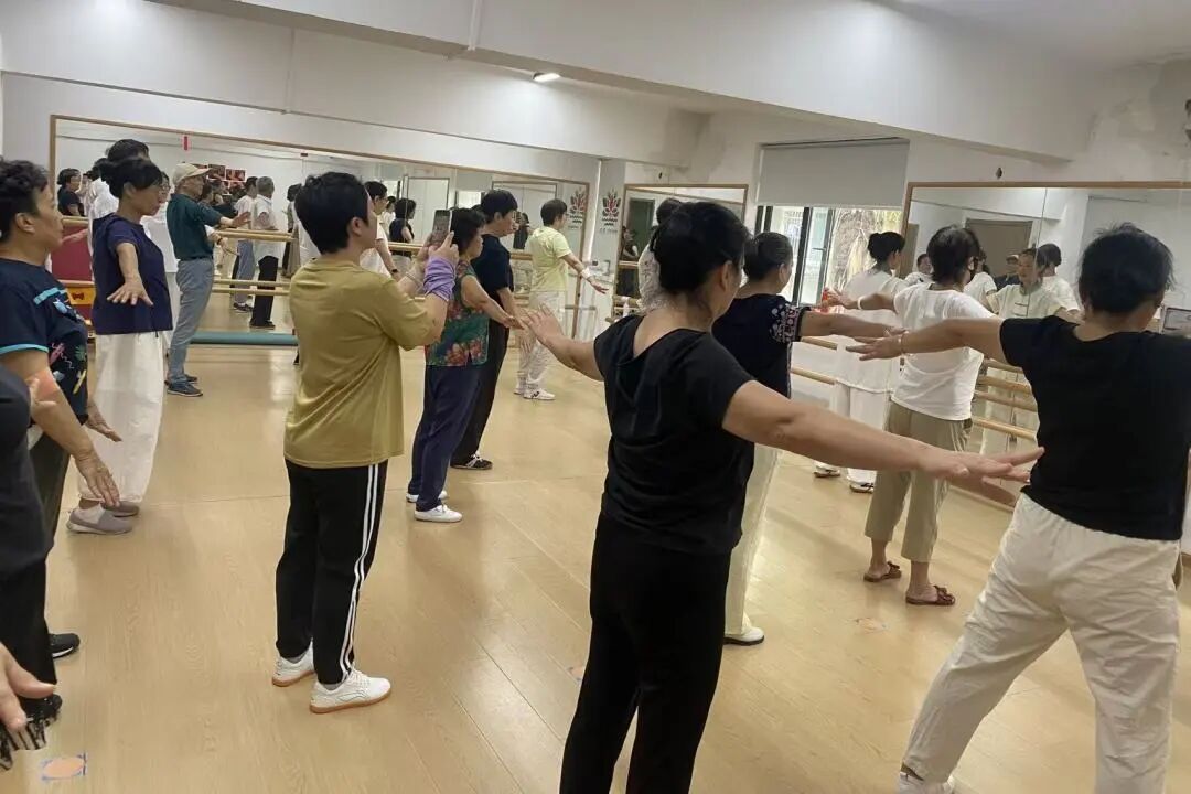 练习过程中,老师一对一纠正居民们的细节问题,大家很快便掌握了八段锦的精髓,自然流畅地打完了一整套动作。