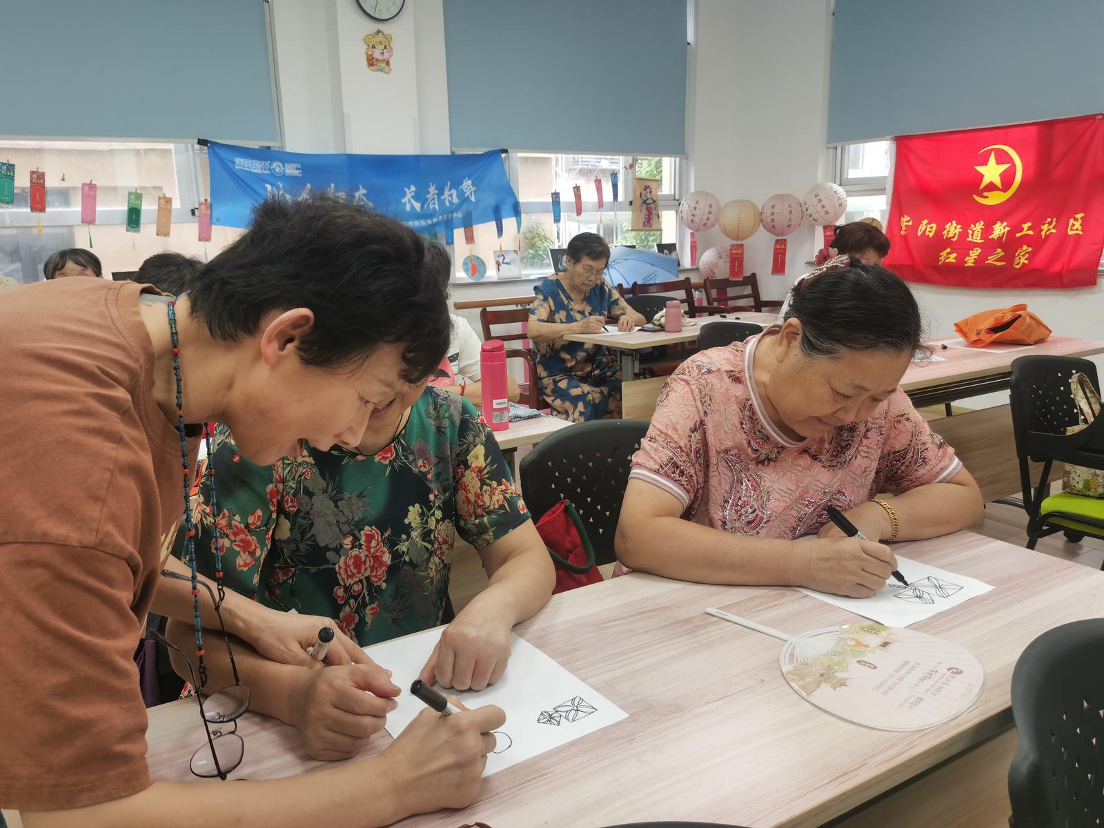 活动以关注老年人心理健康为核心,将艺术创作化为舒缓压力的 “良药”。课堂上,包郓老师凭借专业细致的指导,为长者们揭开 “缠绕画” 的神秘面纱。长者们纷纷执起画笔,在白纸上反复揣摩线条的缠绕逻辑与组合技巧。这种极具结构性的创作方式仿佛拥有魔力,让大家迅速沉下心来 —— 笔尖在纸面轻舞,杂念随线条消散,浮躁心境在重复勾勒中逐渐沉淀,专注与安定的力量在教室悄然流淌,真切诠释着 “心灵瑜伽” 的深意。