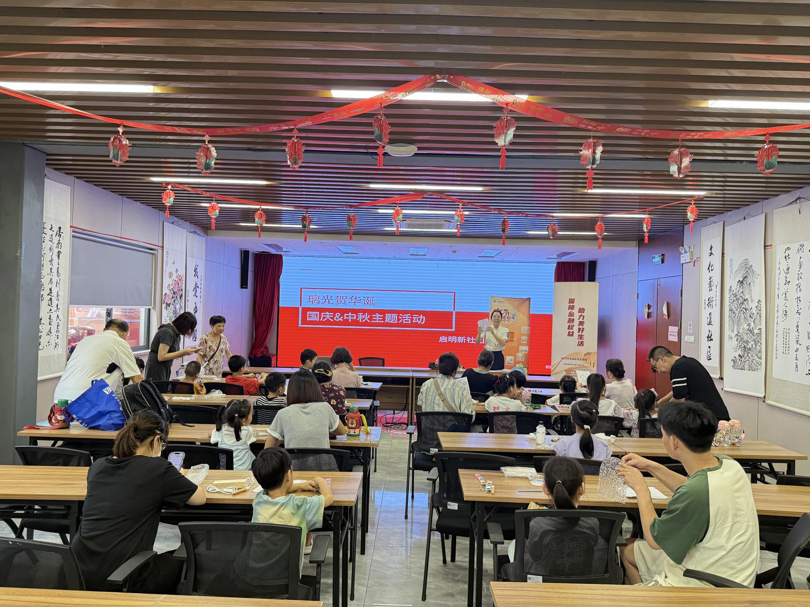 双节将至,家国同庆。今日下午,新工社区新时代文明实践站联合杭州银行,为启明新社团的青少年精心打造了“璃光贺华诞”红色爱国主义玻璃画 DIY 手绘小夜灯活动,以指尖创意传承红色基因,用斑斓光影诉说家国情怀。