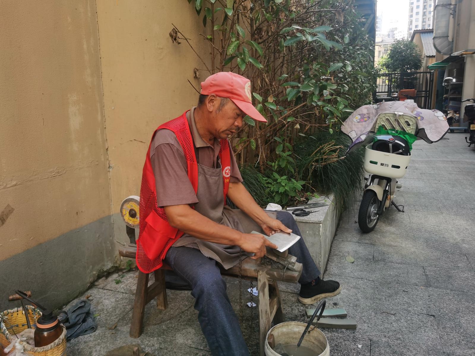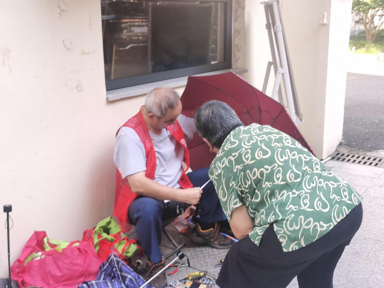 活动现场暖意融融,各服务摊位前秩序井然,吆喝声与工具摩擦声交织成热闹的民生图景。磨刀区域里,师傅手持专业工具,在砂轮与刀具的摩擦声中仔细打磨,原本锈迹斑斑的菜刀、剪刀很快便重现锋芒,居民接过 “焕新” 的刀具时笑意盈盈。修伞摊位同样人气高涨,工作人员逐一排查伞具骨架、伞面、伞柄的破损处,熟练地更换零件、缝合伞面,让濒临报废的雨伞重获 “新生”,不少老人拿着修好的雨伞反复查看,连声道谢。