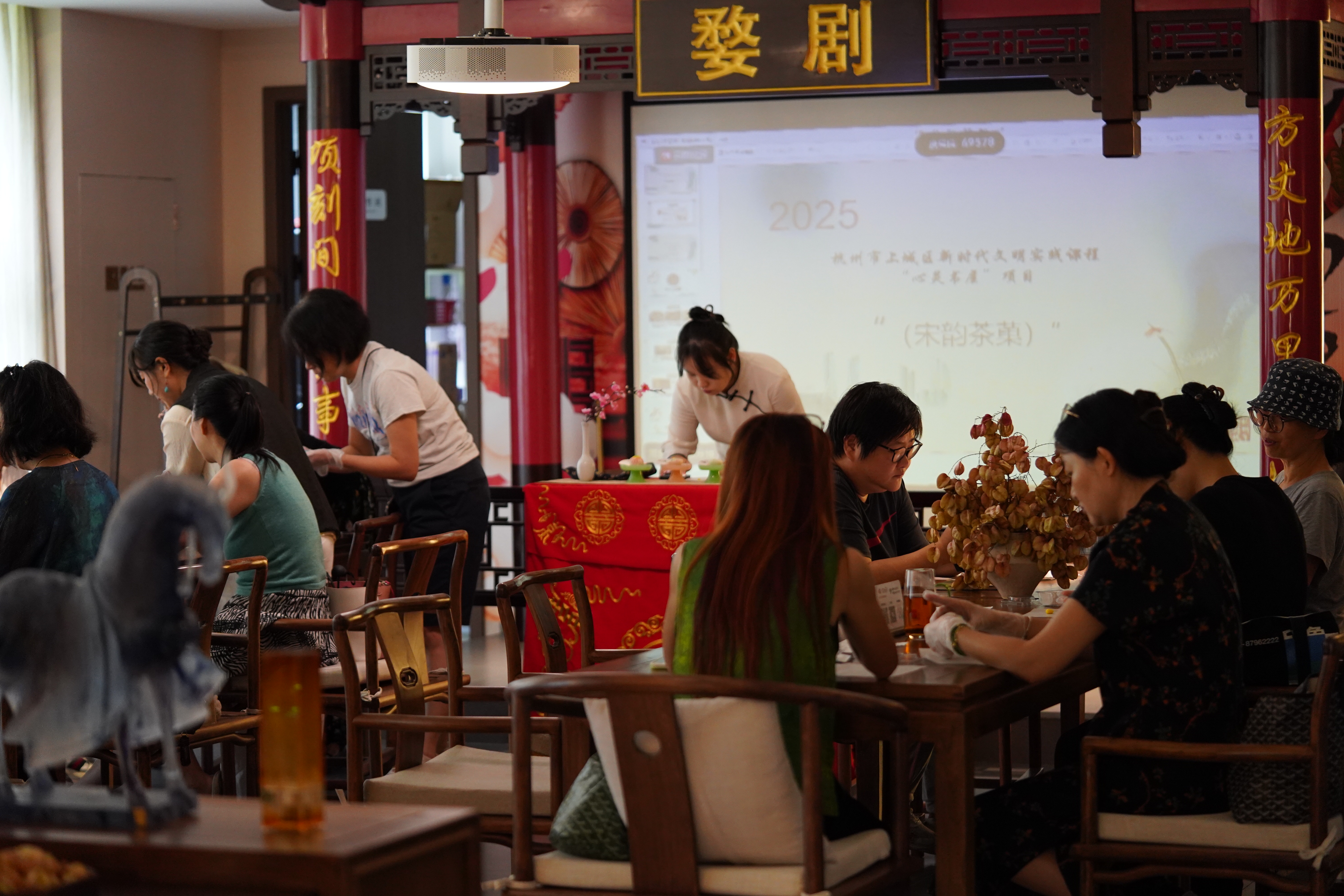 【宋韵茶果子迎中秋】#遇见美好上城#中秋将至,“心灵书屋”将宋韵茶果子的制作技巧送到了甬江社区的退休工人之中,在西泠书房禧茗茶馆的古韵中式氛围中,一双双巧手轻揉慢压,塑造出一颗颗灵动可爱、造型优美的茶果子,共同祝愿大家“茶香生活美,中秋人团圆”#在这里爱上一座城#(资料:紫阳街道 禧茗茶馆/摄)