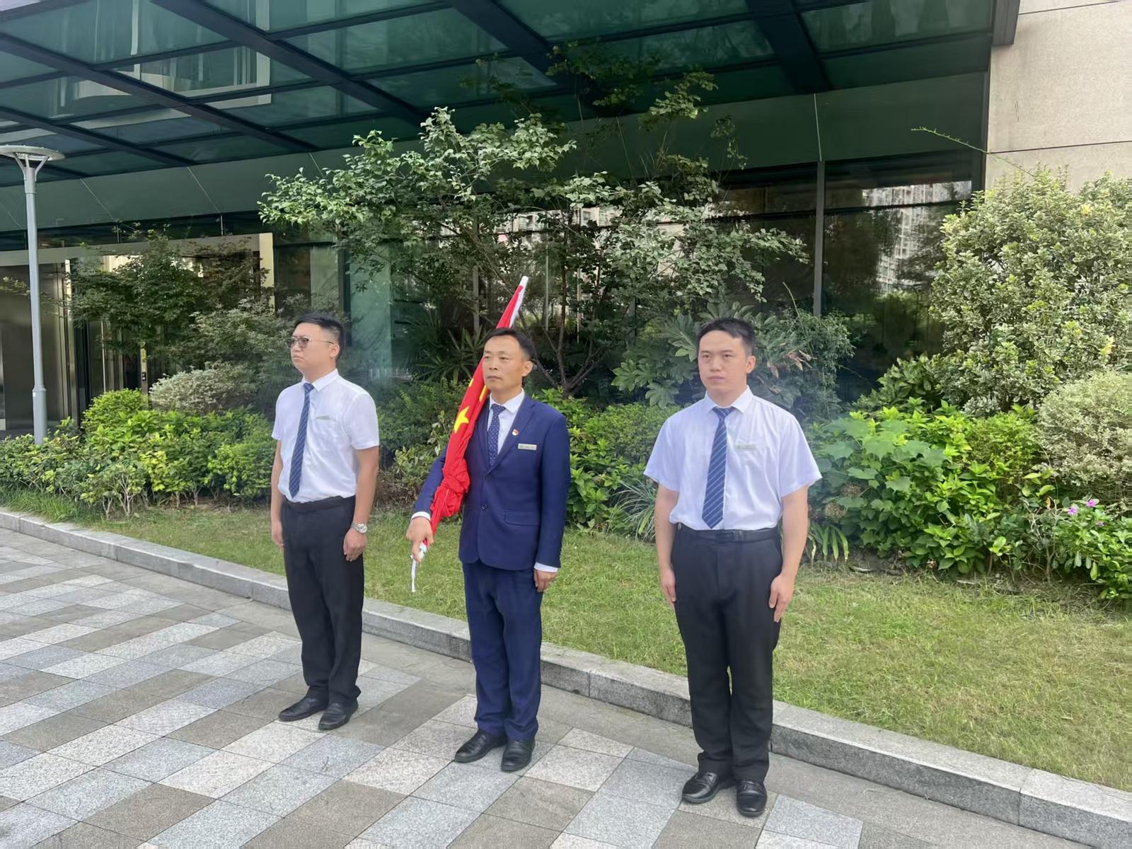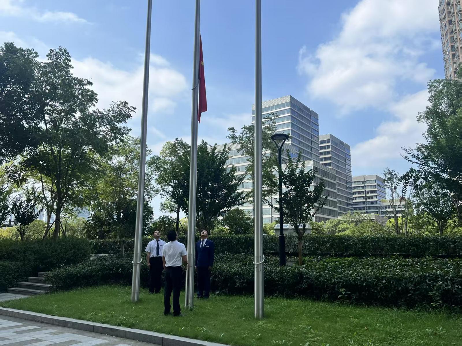 为庆祝中华人民共和国成立76周年,9月22日上午,上城区四季青街道城星社区联合国寿君澜酒店和鲁能城置地有限公司,共同组织20名青年党员代表,于国寿君澜酒店南广场隆重举行“四季有礼·礼赞祖国”主题升旗仪式。此次活动旨在通过庄严的仪式感激发青年一代的爱国情怀,强化基层党组织的凝聚力。